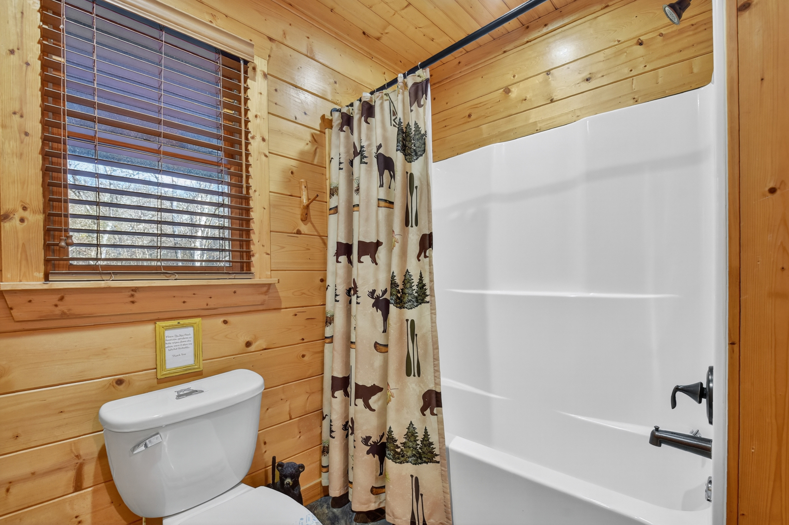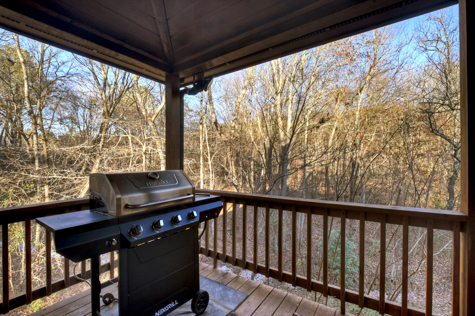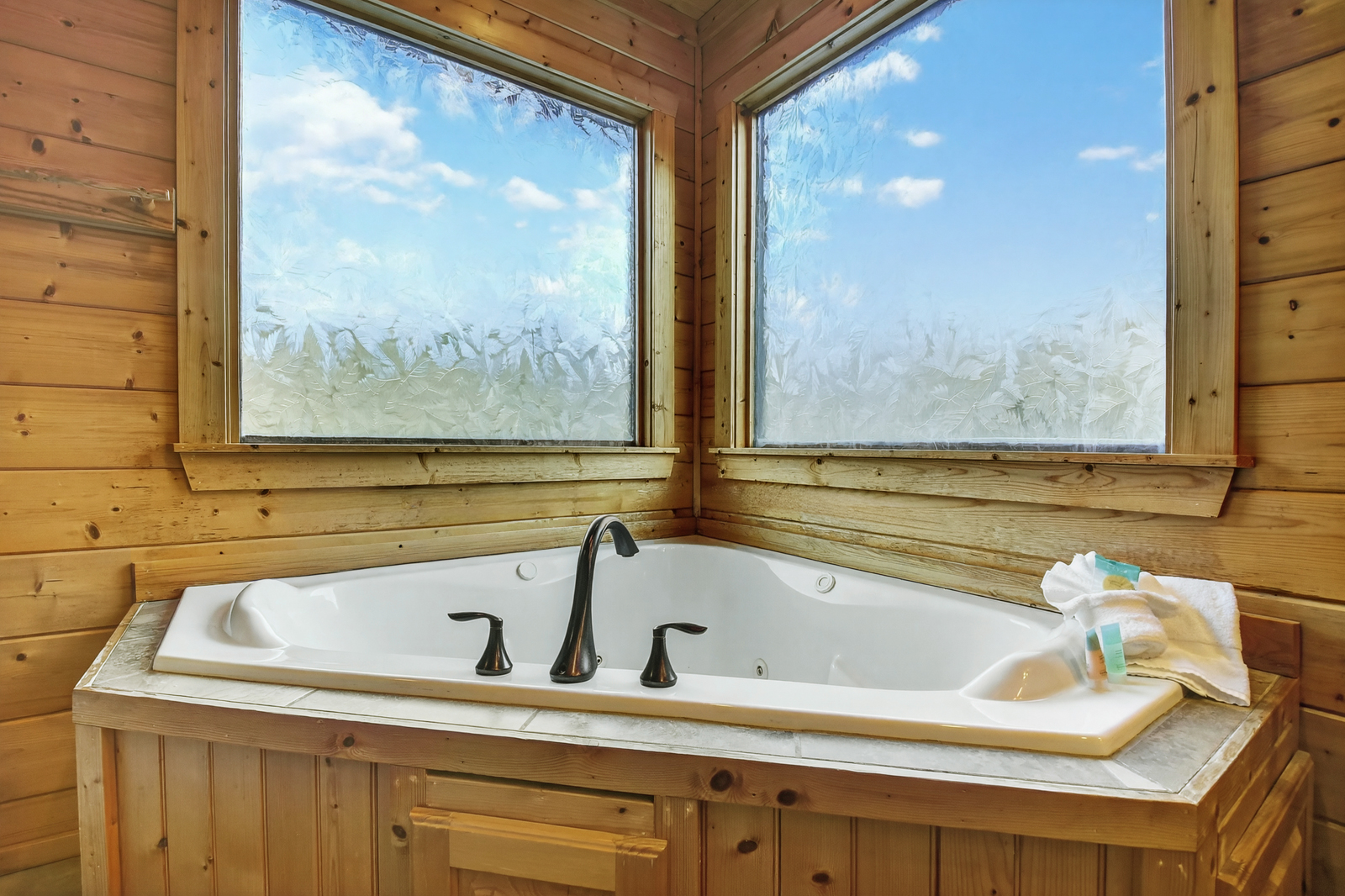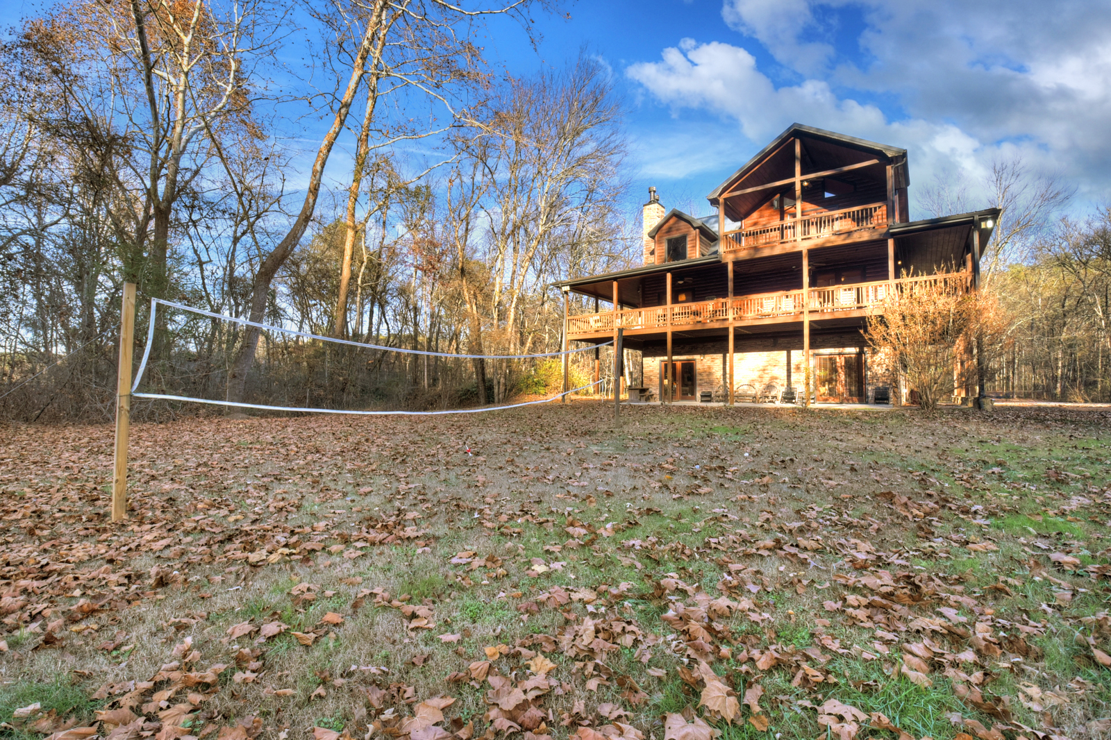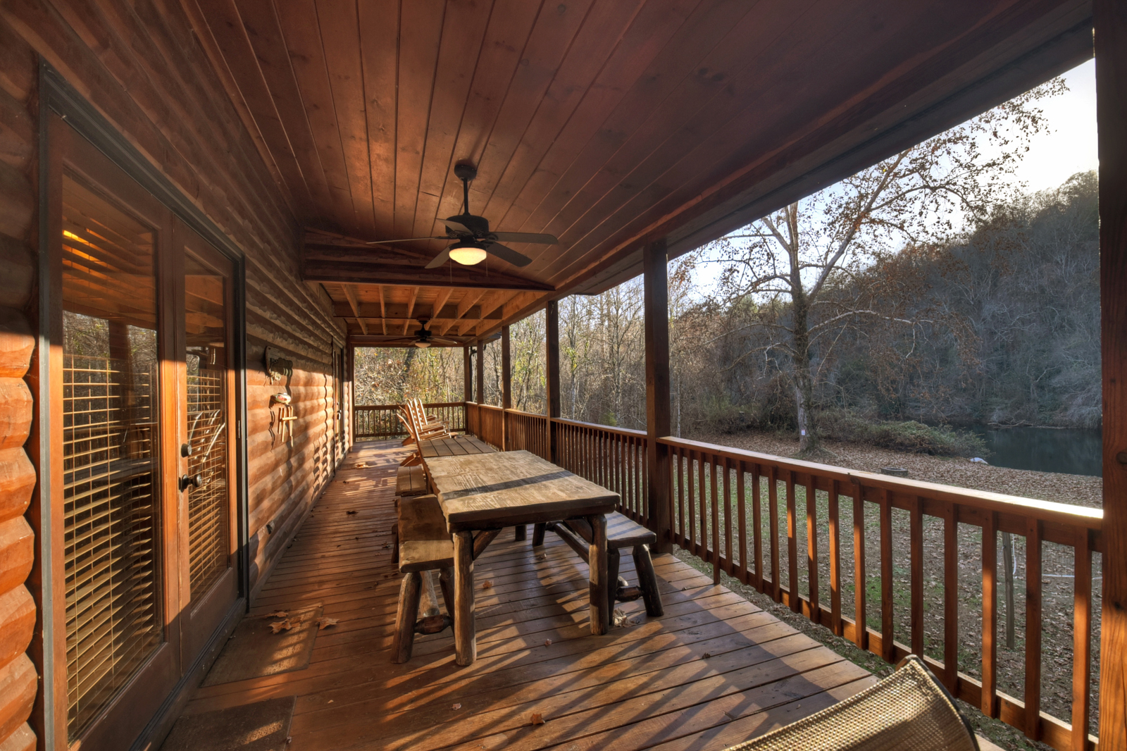 A wraparound deck with rocking chairs offers more space to relax in the fresh air. Light the gas grill for memorable cookouts, enjoyed at the rustic picnic tables. Slip into your swimsuit and kick back in the 6-person hot tub morning, noon, or night. Chat by the crackling outdoor fireplace on cooler evenings. Or play cornhole for more fun!