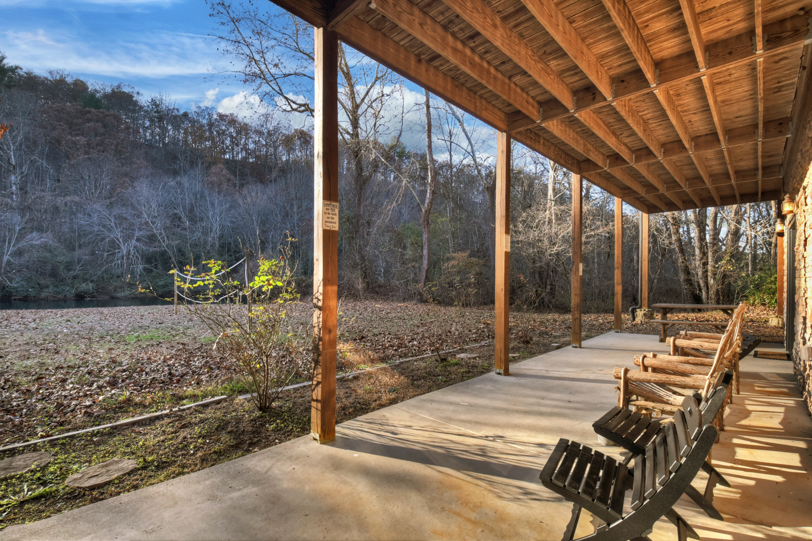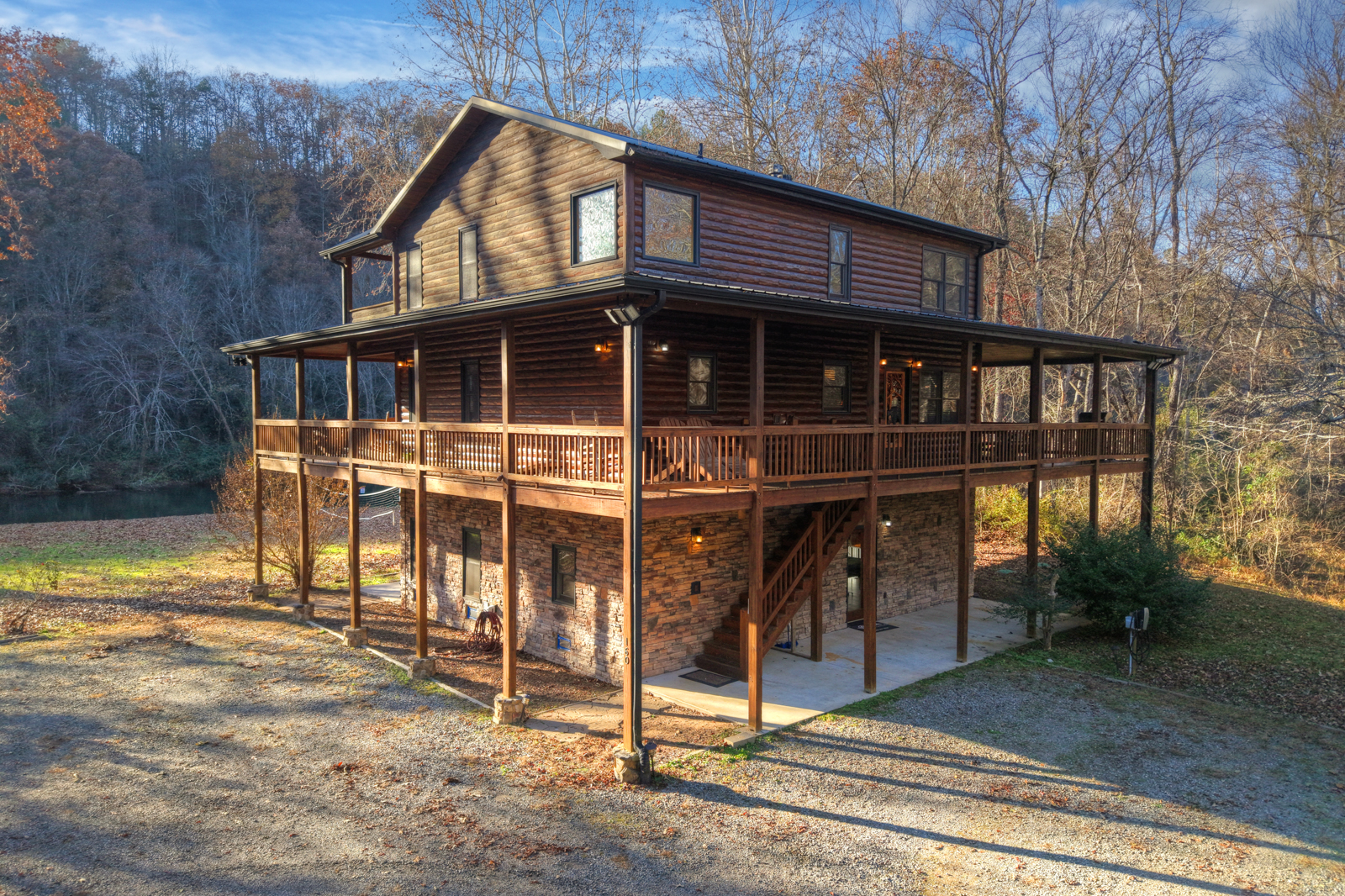 At your waterfront cabin in Copperhill, experience life on the Ocoee River (called the Toccoa River in nearby Georgia) — where you can walk right to the water’s edge. Cast a line, take a dip, or unwind with the sounds of nature as you take it easy in the mountains. A covered porch welcomes everyone to enjoy downtime while the kids play volleyball, badminton, or horseshoes in the spacious yard. There’s even a stone firepit for s’mores and story swaps.