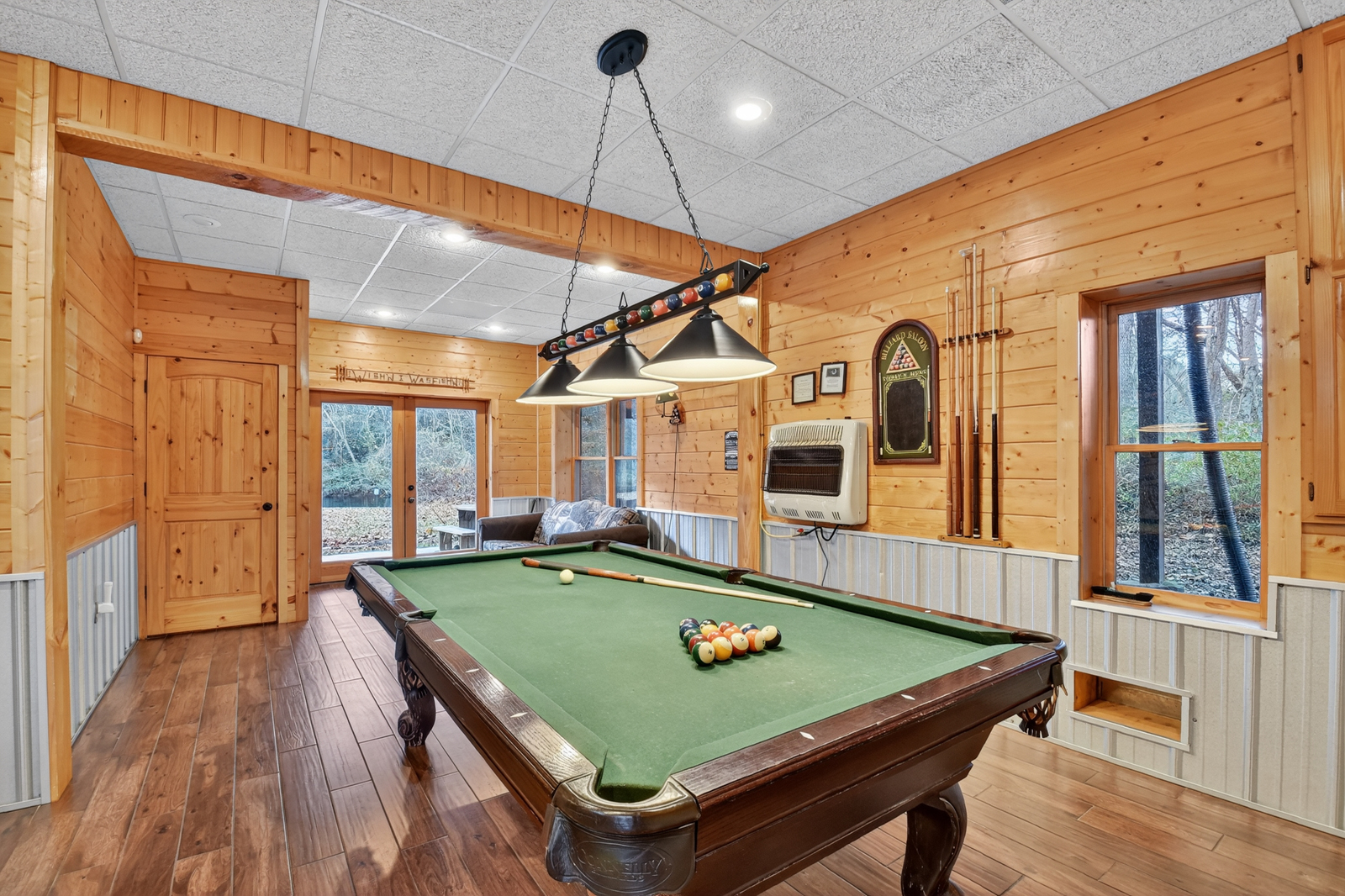 Kick back in the inviting living room as a fire roars and entertainment plays on the big screen TV. A full kitchen features granite counters, stainless steel appliances, a breakfast bar, and a farmhouse table for family dining. Game central awaits downstairs with a pool table, poker table, and wet bar in the cool rec room. Bonus: every bedroom has its own TV, and all TVs are stream capable.