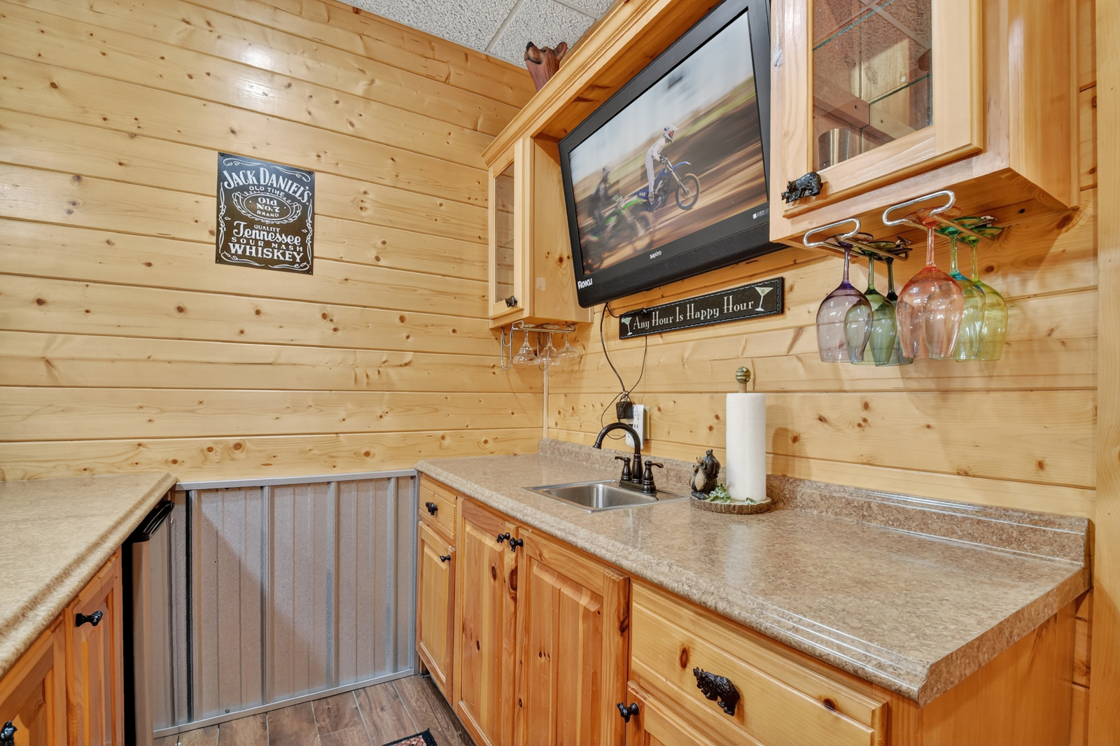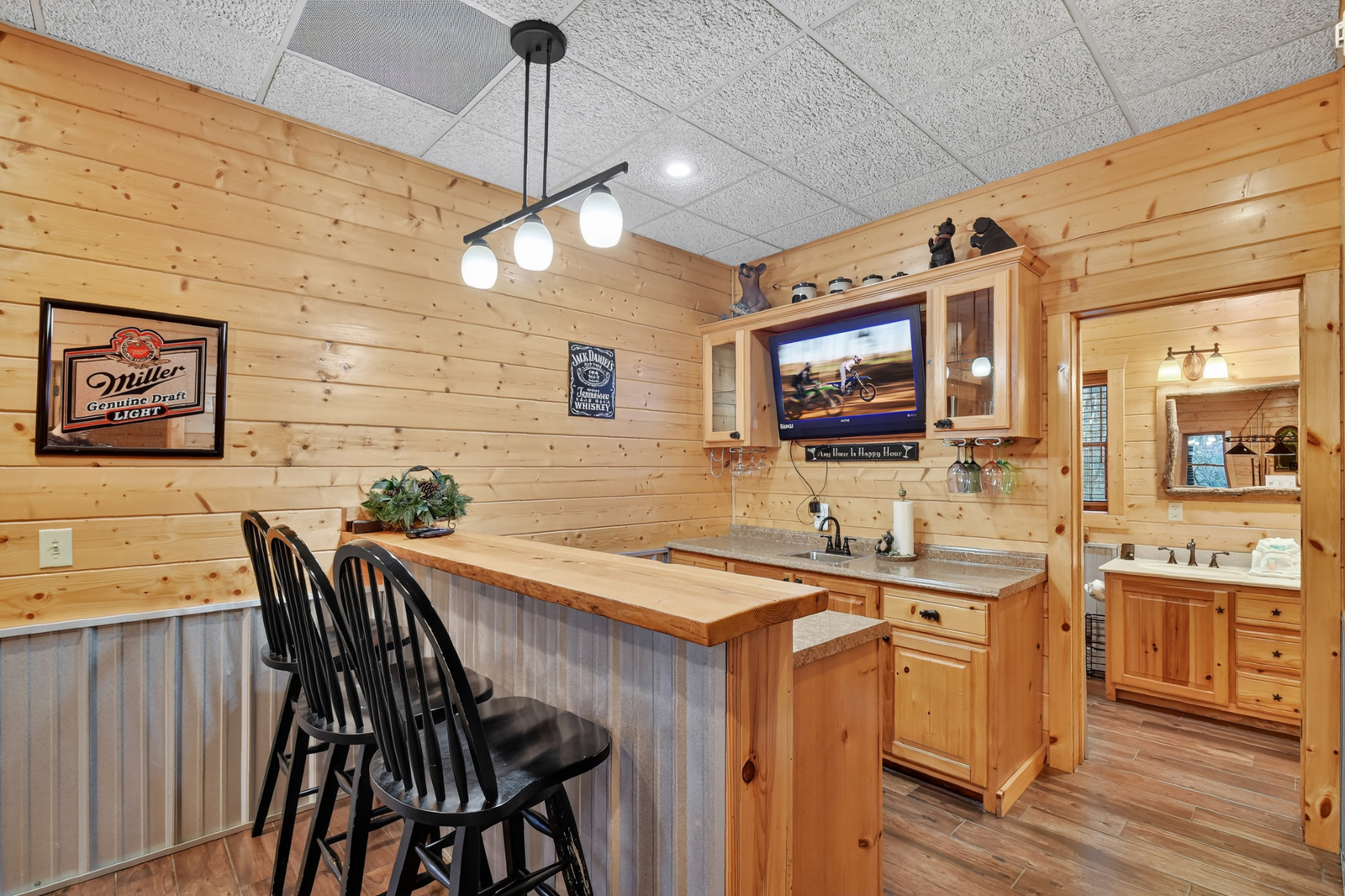 After whitewater rafting, ziplining with friends, or shopping downtown, return for homemade meals, refueling snacks, or evening coffee with dessert. There’s even a breakfast bar for taste testers or early morning risers plus a window over the sink for added lighting and Appalachian ambiance.