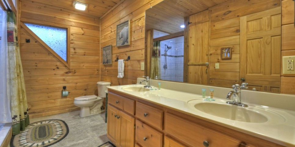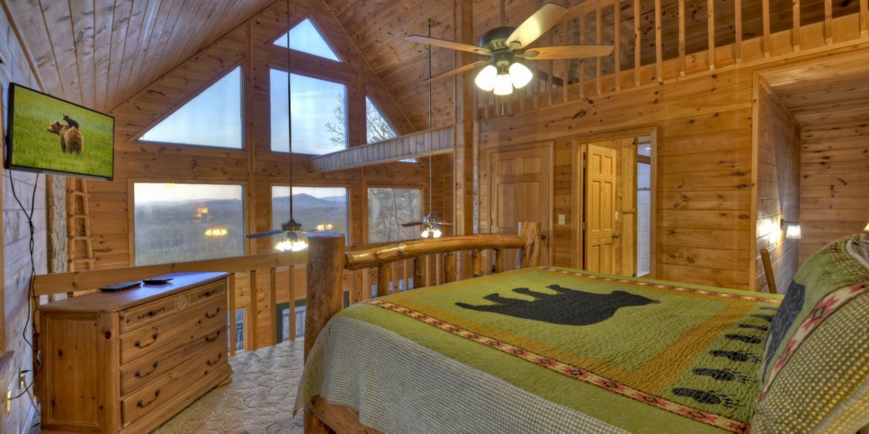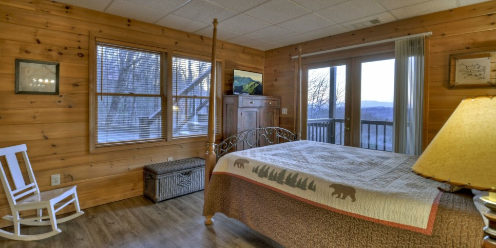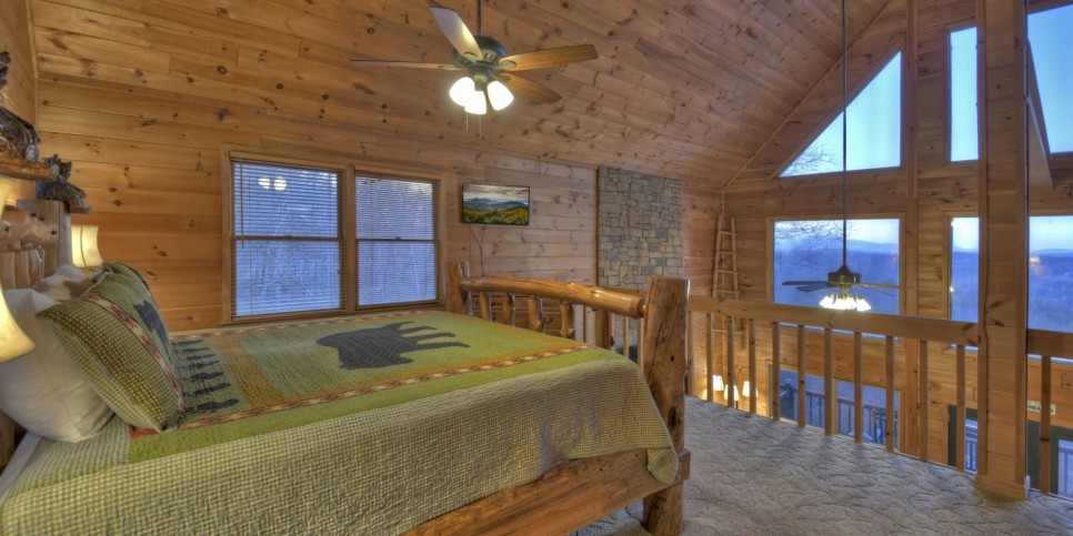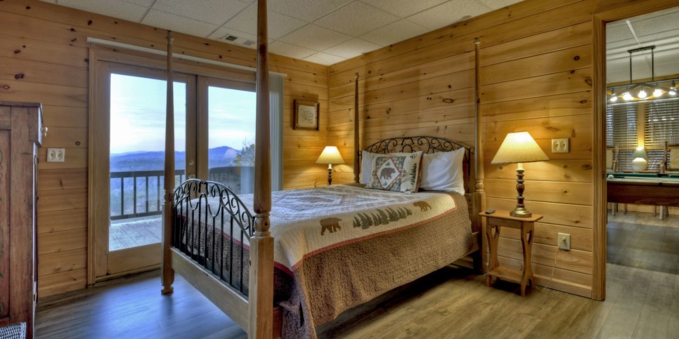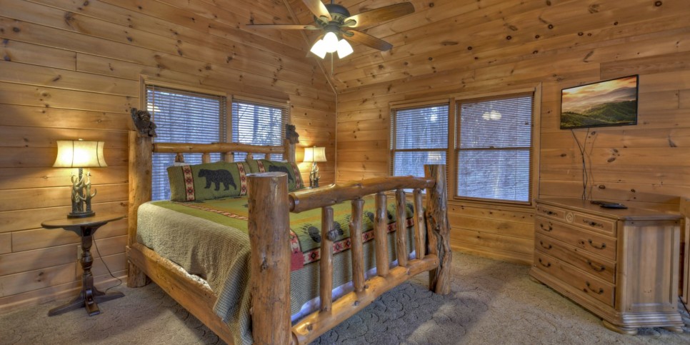 Retreat to the welcoming bedrooms at this Blue Ridge Mountain cabin rental in North Georgia at night. They feature log furniture, including 1 king, 1 queen, and 2 twin beds. There’s also a queen sleeper in the home for more space. Bear Necessities also offers homey conveniences, including wireless internet, a washer/dryer, and self-check-in. With everything you need plus extras, you can forget about your worries and your strife at this mountain retreat!Â