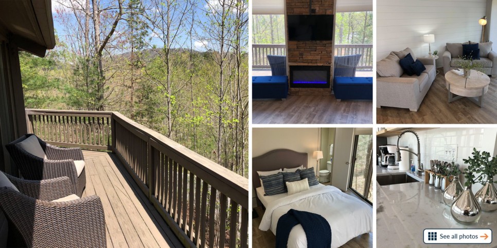 Pack your bags and head to the Blue Ridge Mountains in North Georgia — where scenic wineries, the Chattahoochee National Forest, country chic shopping, and Chalet 40 in Big Canoe await YOU! Nestled in a gated community, this treetop house rental features 2 bedrooms, 2 bathrooms, space for 4, a fully outfitted kitchen with updated appliances, a cozy living room with a stacked stone fireplace, 3 big screen TVs with YouTube TV and Netflix, plus recent renovations and new floors (2021).