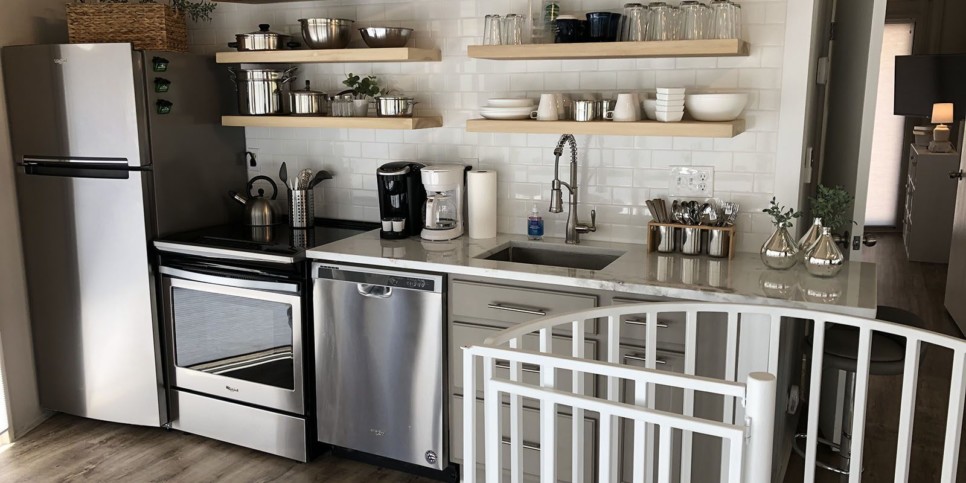 Pick up groceries from the community store or grab produce from a Georgia farm and get ready to cook breakfast, lunch, or dinner at your cabin. Stainless steel appliances — including a fridge and freezer, range, and dishwasher — plus a microwave, pots and pans, dishes, cutlery, and cooking utensils are all provided. There’s also a Keurig and a standard drip coffeemaker!