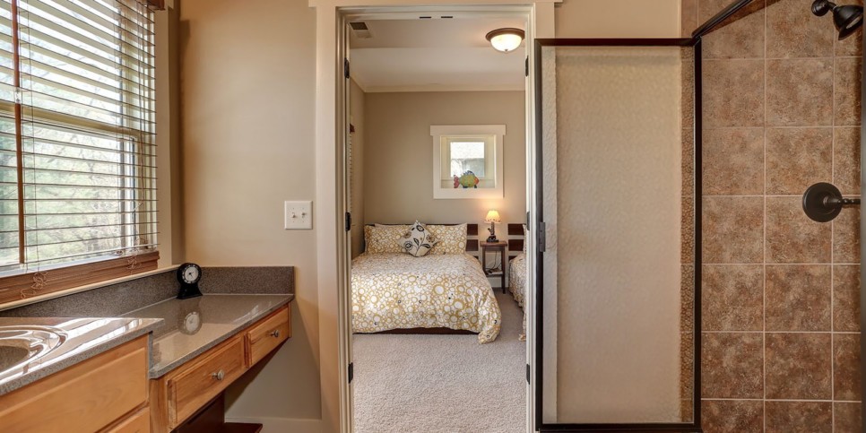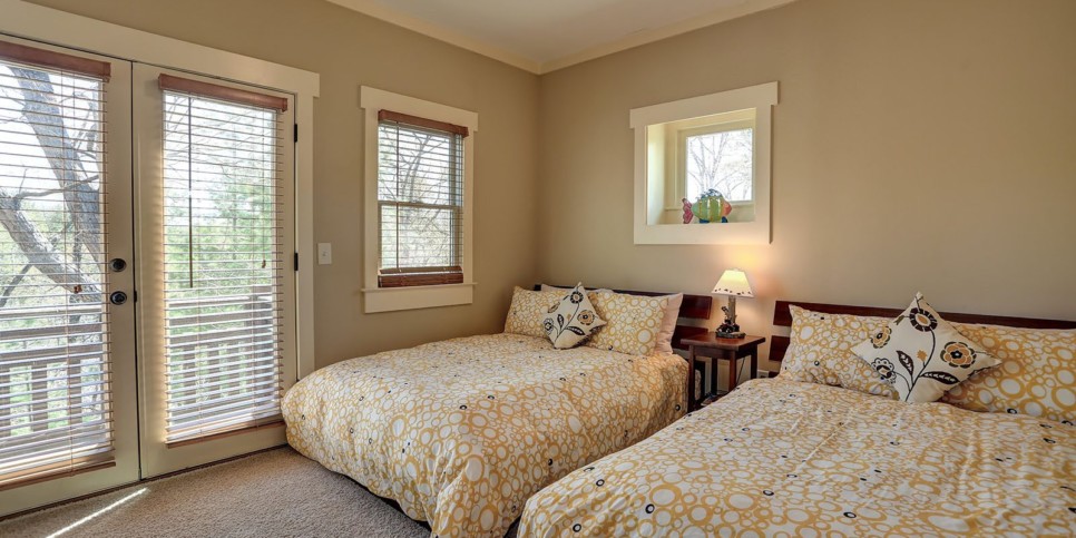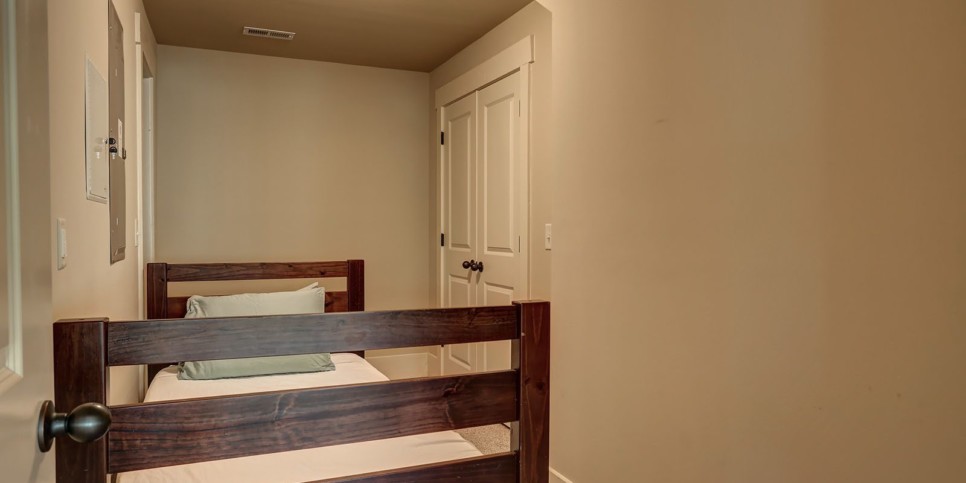 Bedrooms in Choctaw Lodge offer a nice mix of bedding for your group. The main bedroom upstairs has a queen-size bed (with a balcony), and a second bedroom features 2 full-size beds and a twin bed, along with a full bathroom with a shower/bath. Downstairs, find 1 queen-size bed and 1 twin bed, plus a bathroom. The bedrooms offer a variety of amenities, including ceiling fans, closets, and bathrooms to make getting ready that much easier.