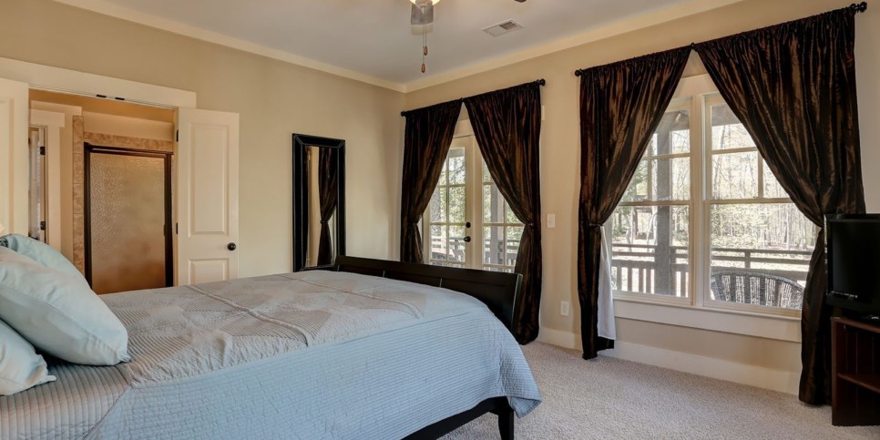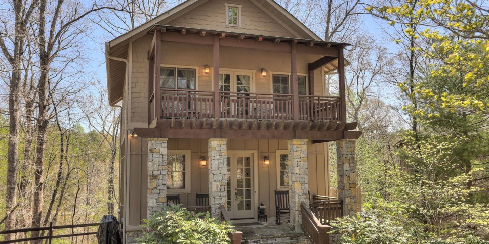 A luxury vacation home in the beautiful Big Canoe Community in Jasper, Georgia, Choctaw Lodge boasts upgraded amenities, stylish mountain decor, comfortable furnishings, great indoor and outdoor spaces, entertainment, 3 cozy bedrooms, 3.5 convenient bathrooms, and space to sleep up to 9 guests for a fantastic family vacation or getaway with friends. Tucked among the trees of the North Georgia mountains – about 1 ½ hours from Atlanta and an hour from Blue Ridge, this welcoming vacation rental offers a peaceful, serene setting – with all the comforts of a modern home.