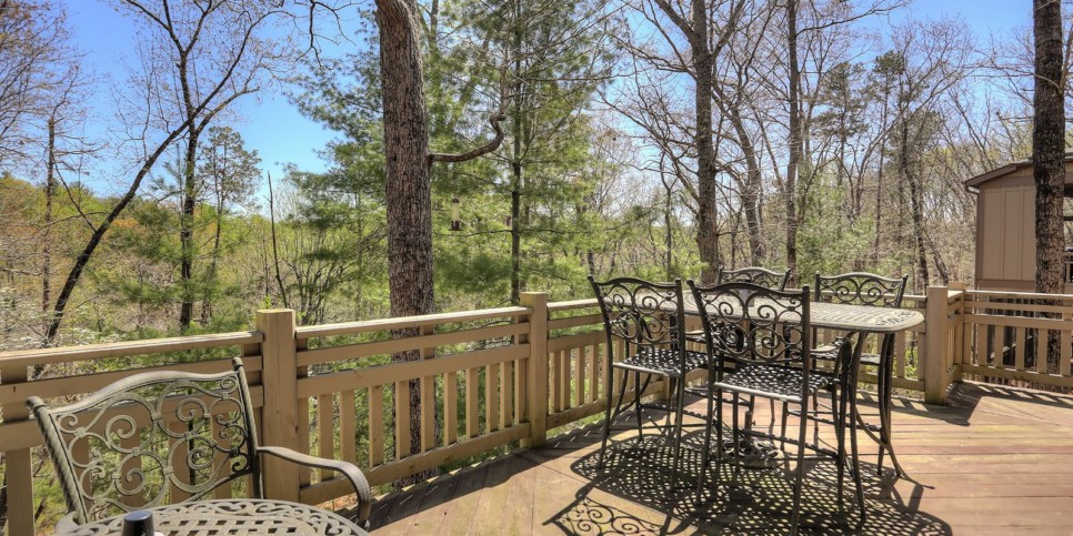 Want some sun? Step out onto the open deck that has a high-top table for 4 and a cafe-style table. Enjoy the trees all around, have a snack, and just hang out on a laid-back mountain day.