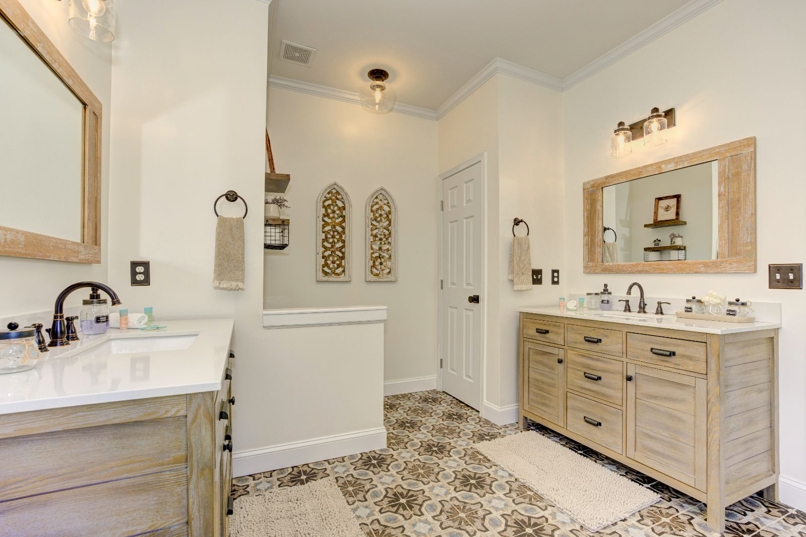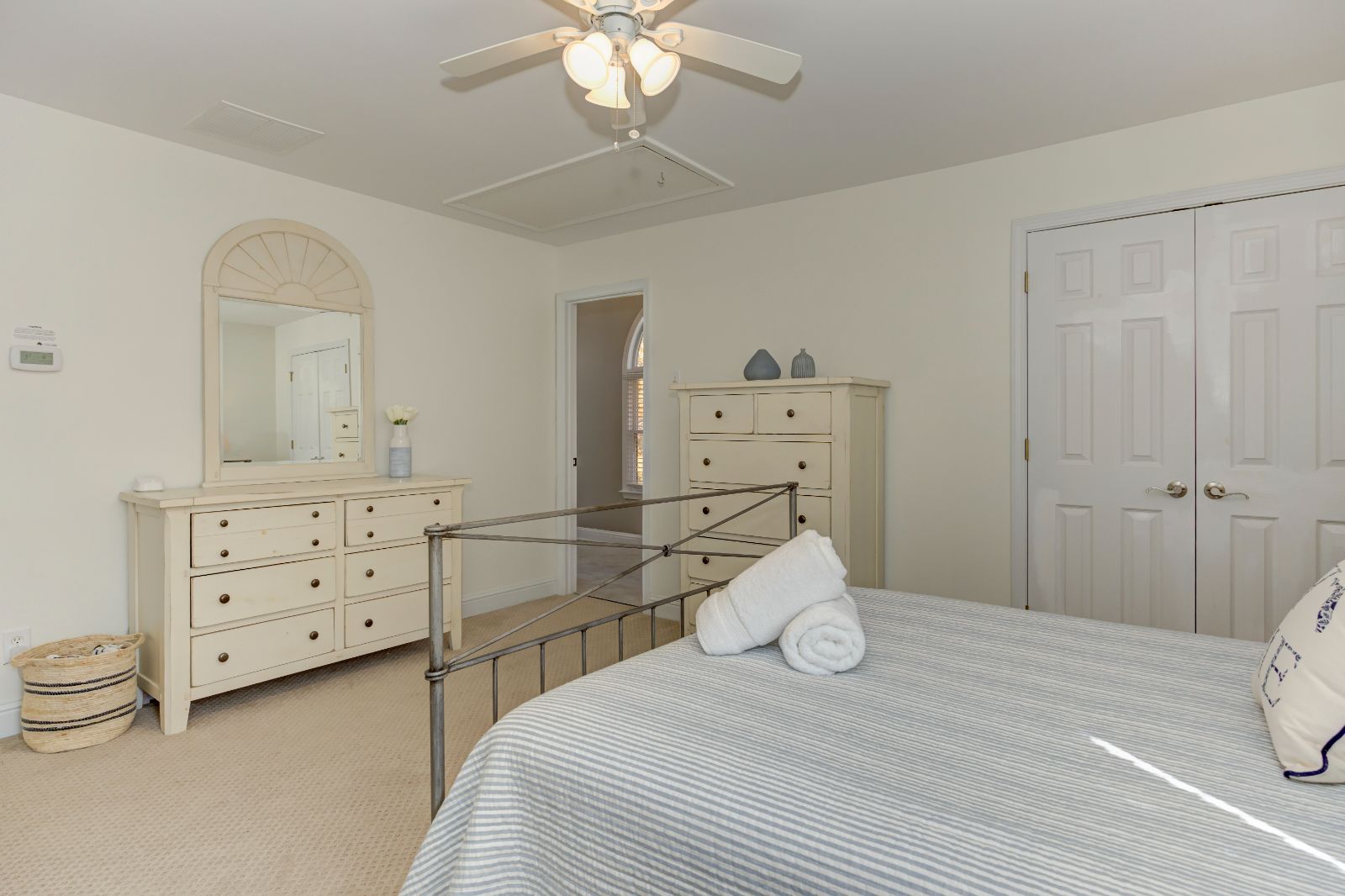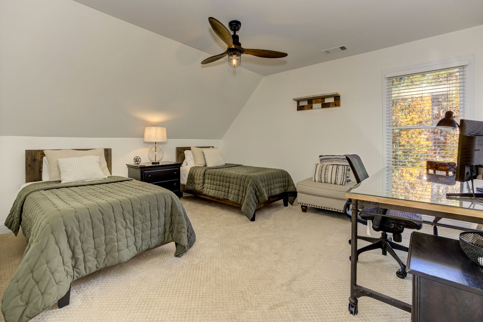 Get good sleep at your 4-bedroom Big Canoe lodge with a loft between all the family fun in North Georgia. In the primary suite on the entry level, a king bed beckons sweet dreams, a big screen TV offers entertainment anytime, and the en-suite bathroom is spa-like — with a soaking tub, large tile-and-glass shower, and 2 separate vanities. Enjoy a soothing bubble bath or hot rinse with your partner before slipping into bed.