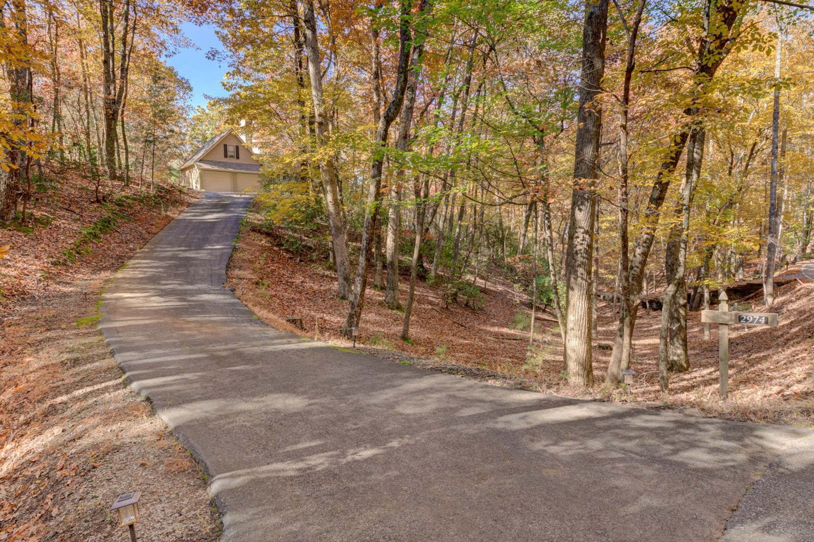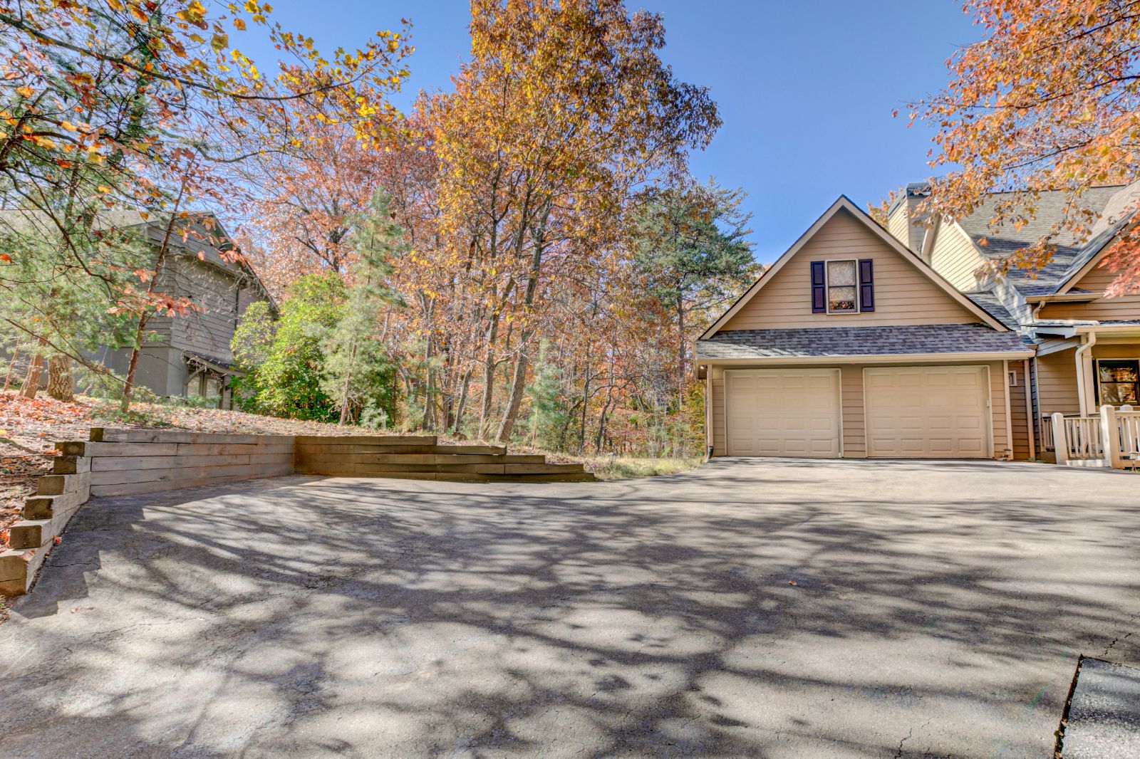 Roads to the property are flat and paved, leading to a steep, paved driveway with parking for up to 5 vehicles, including a double garage; there are only 2 steps up to reach the front porch.