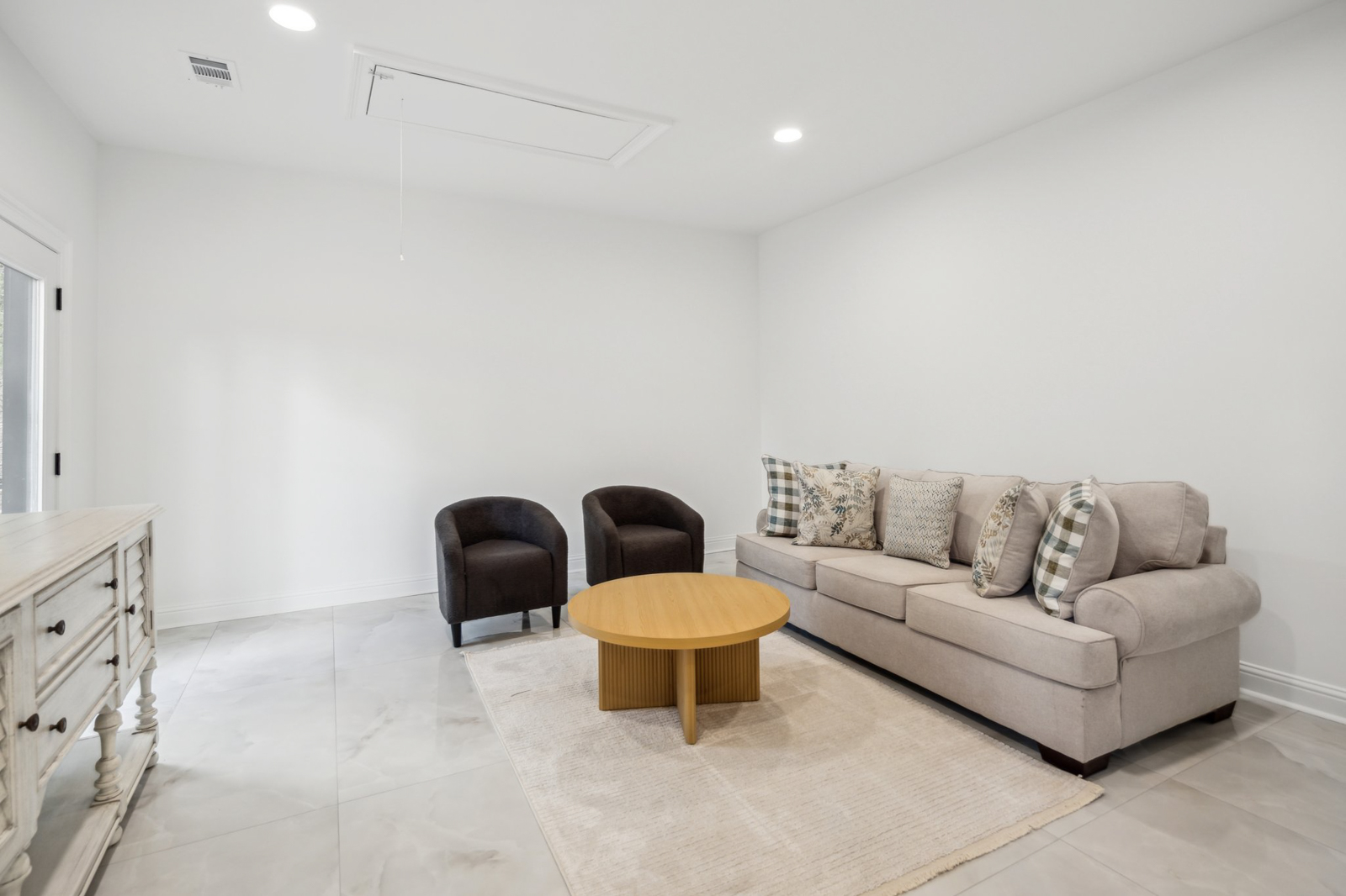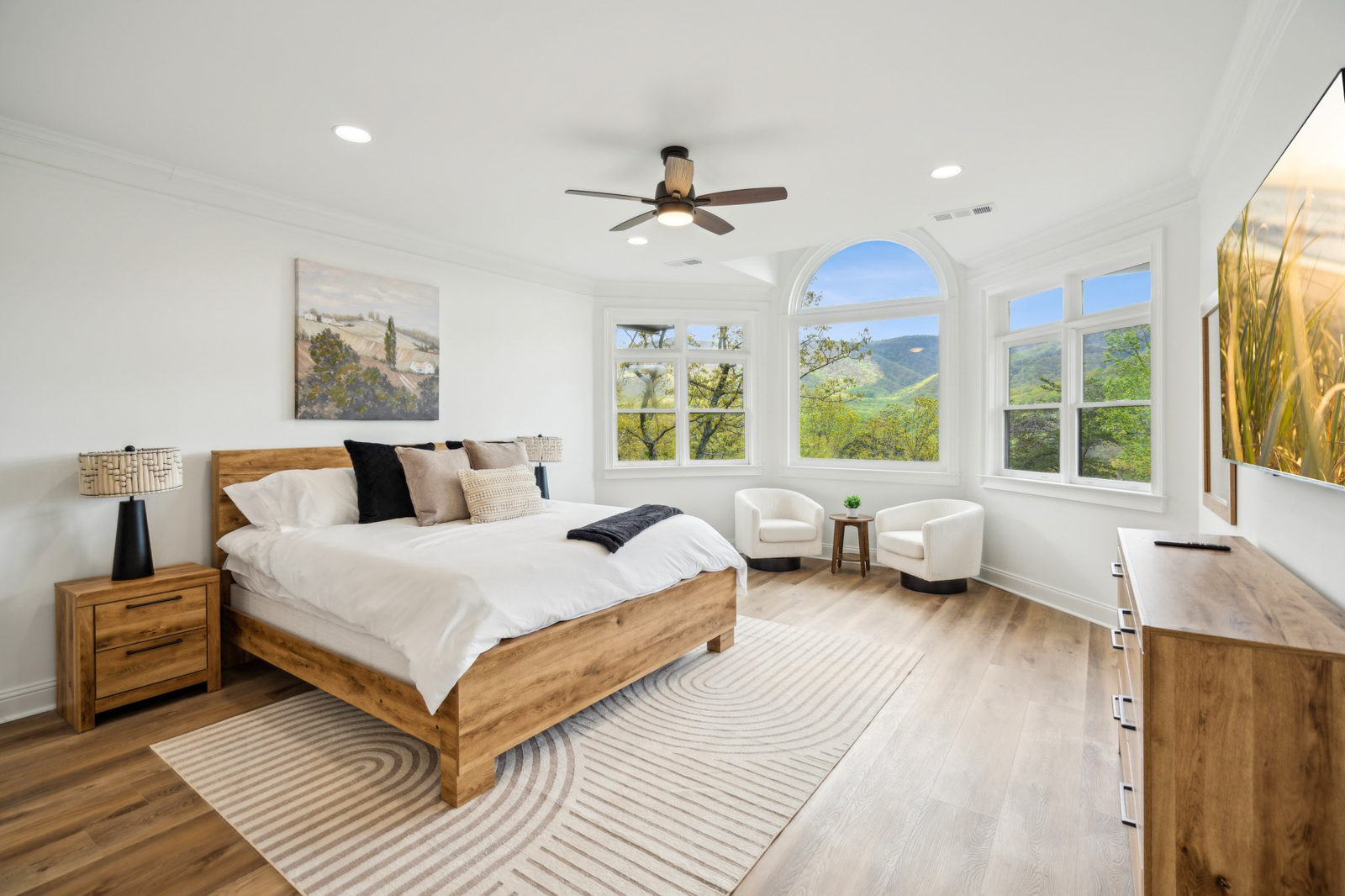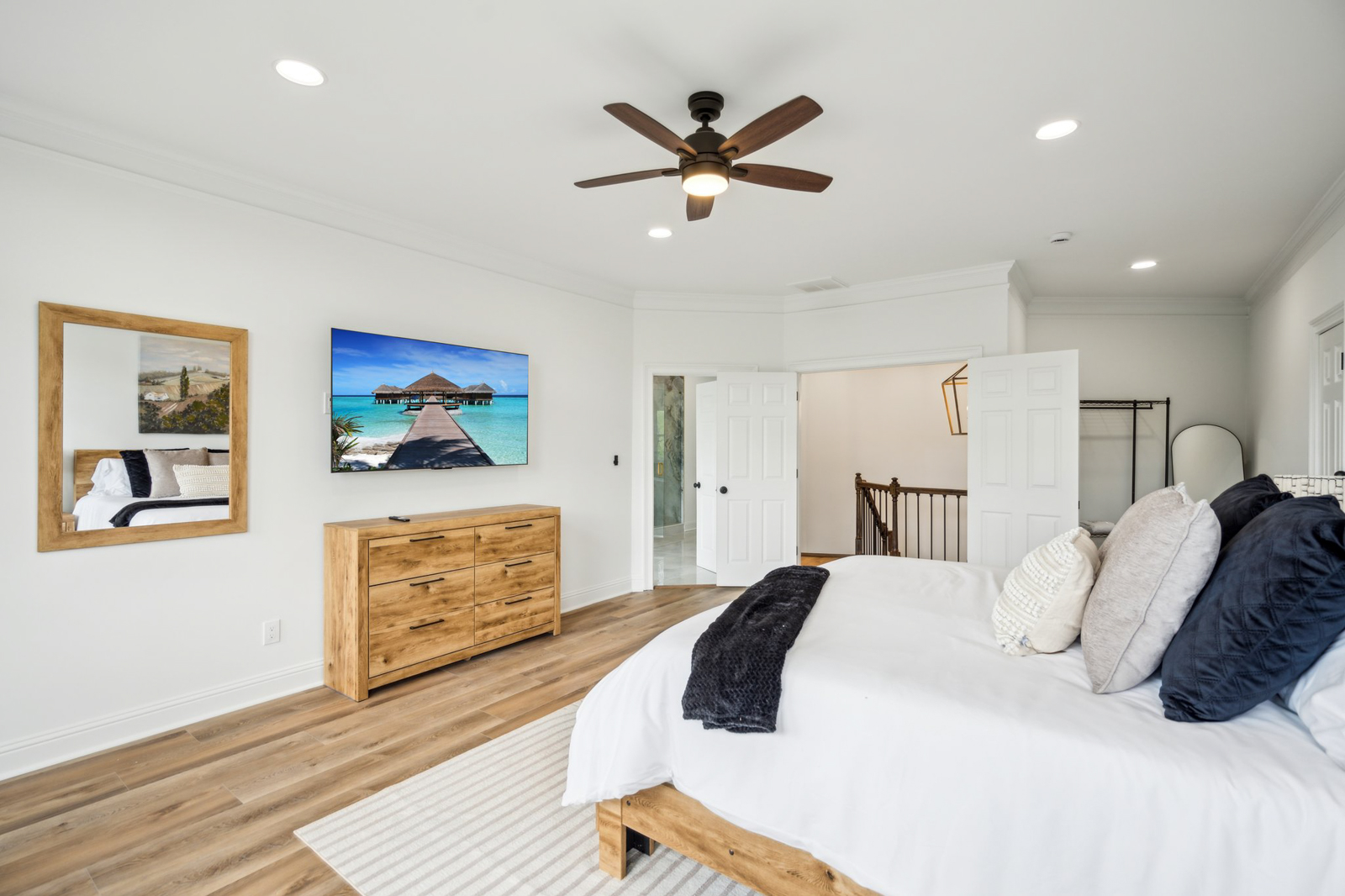 The final bedroom is located over the garage, accessed from the entry-level den; there is no bathroom in this area of the home.