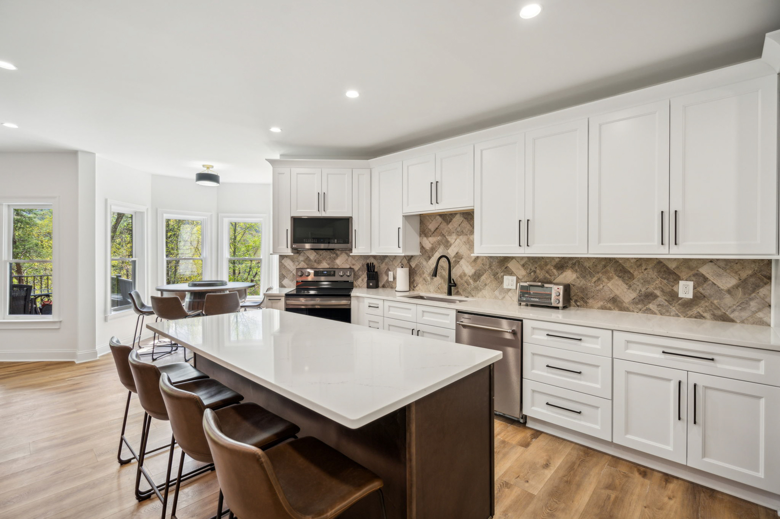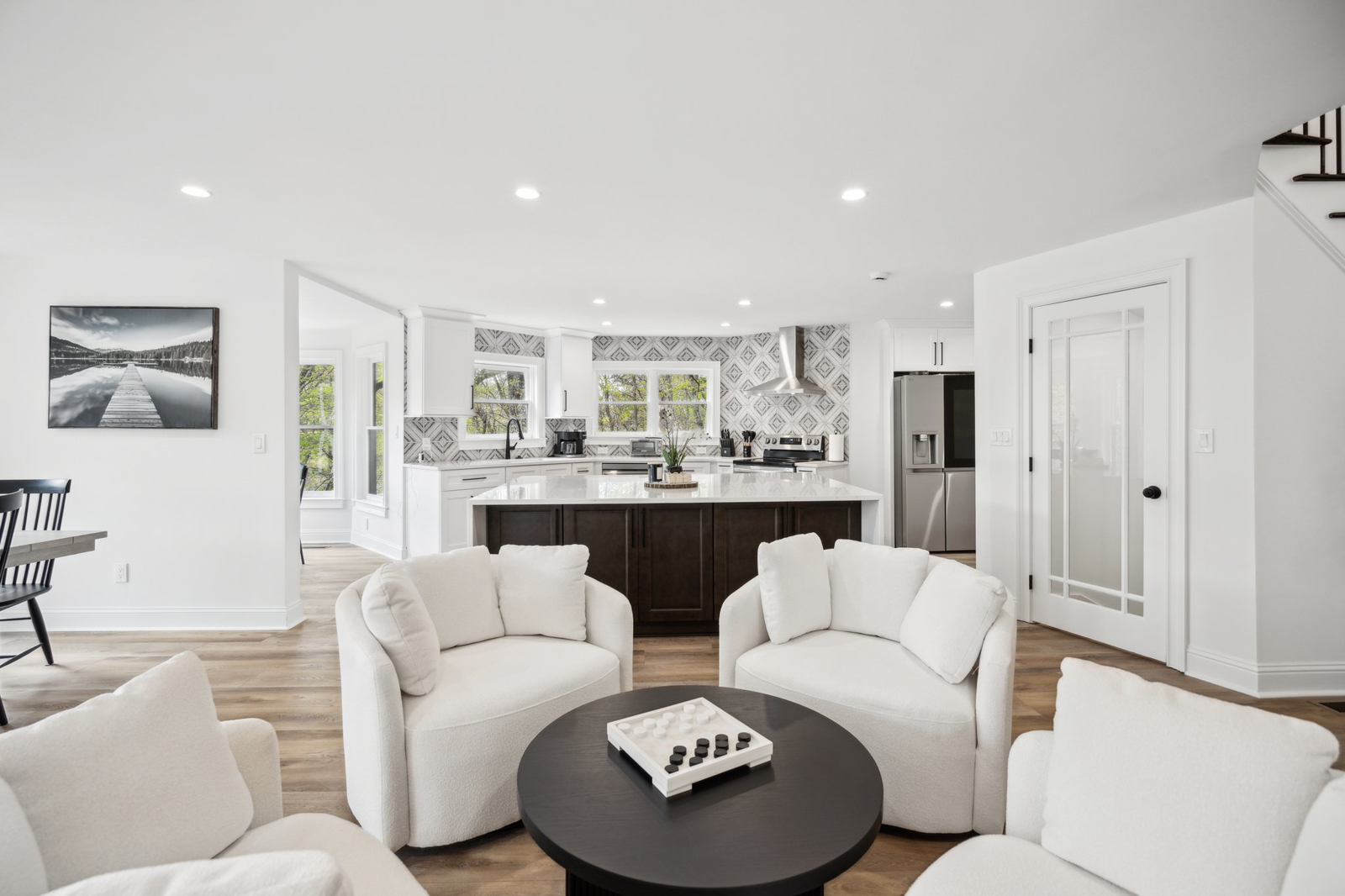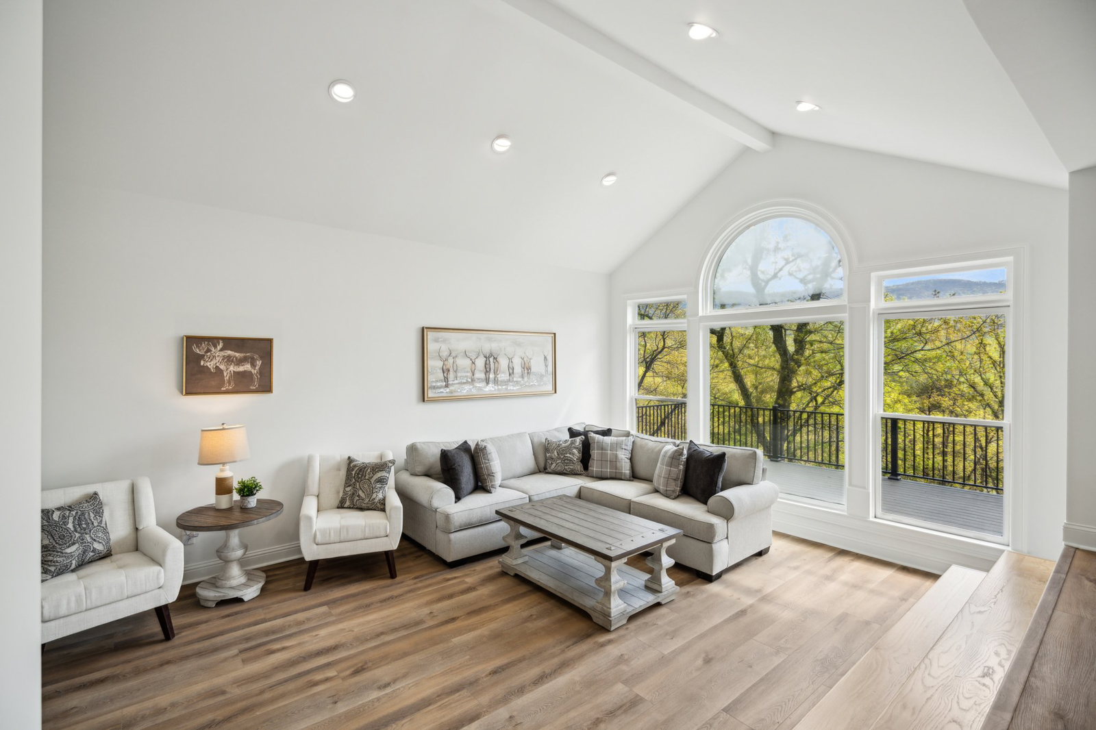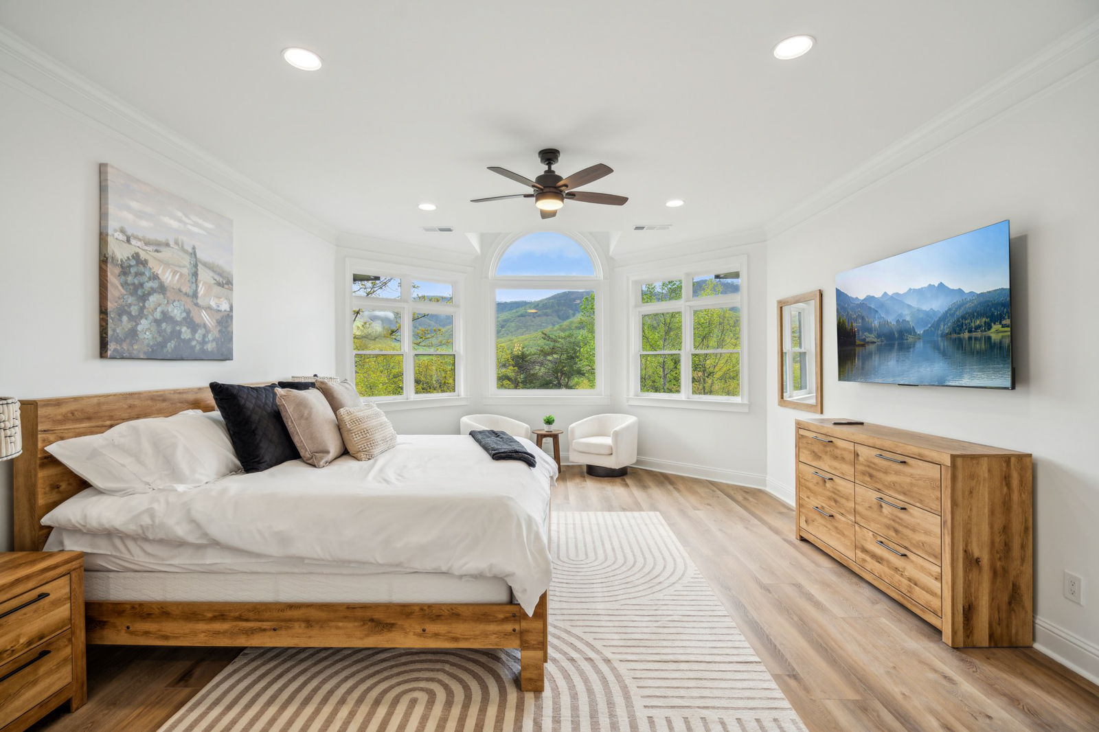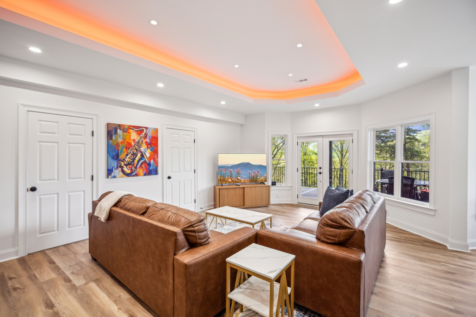 When morning hues wash over the landscape, head to the decks to take in the gorgeous mountain vistas with your Keurig or drip coffee in hand. Two full kitchens allow your large group to craft dishes and drinks without stress. And fireplaces welcome you to get cozy with loved ones in fall and winter. In addition to the main living room, there’s a bonus den with another TV and fireplace — plus a game room — in this 5-bedroom vacation home!