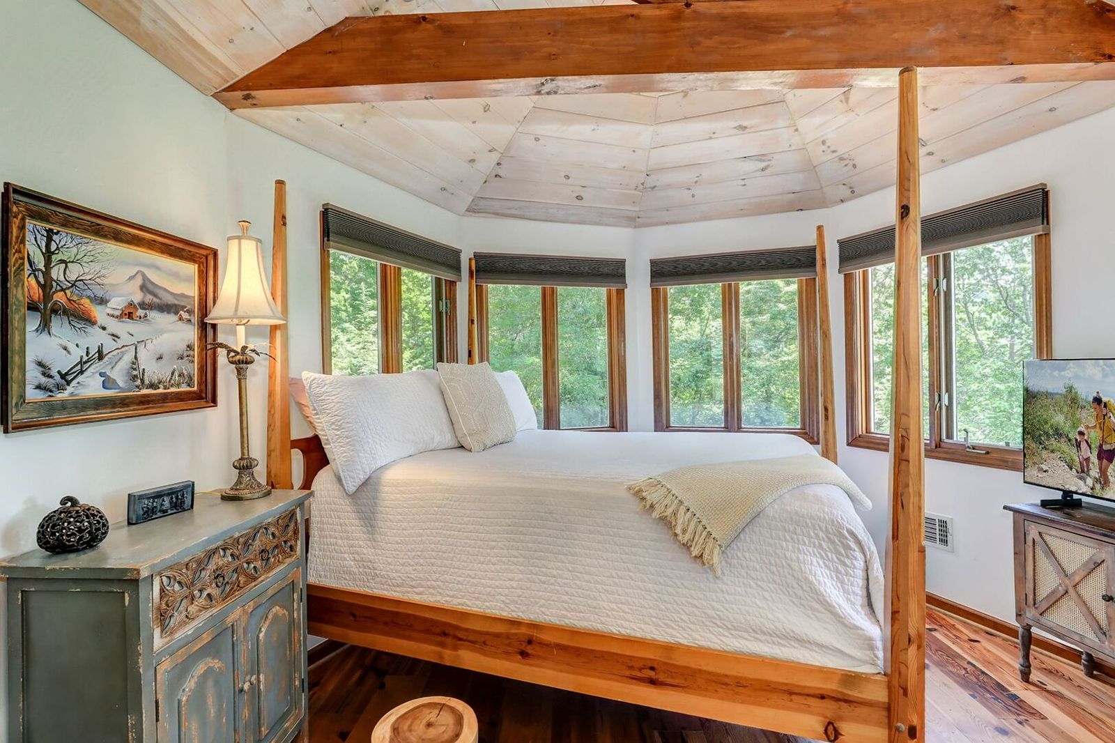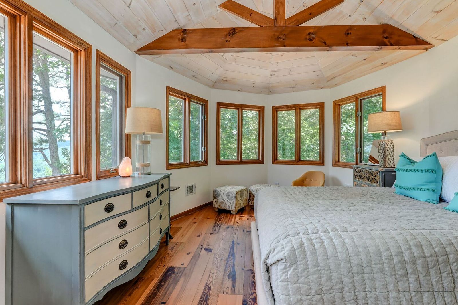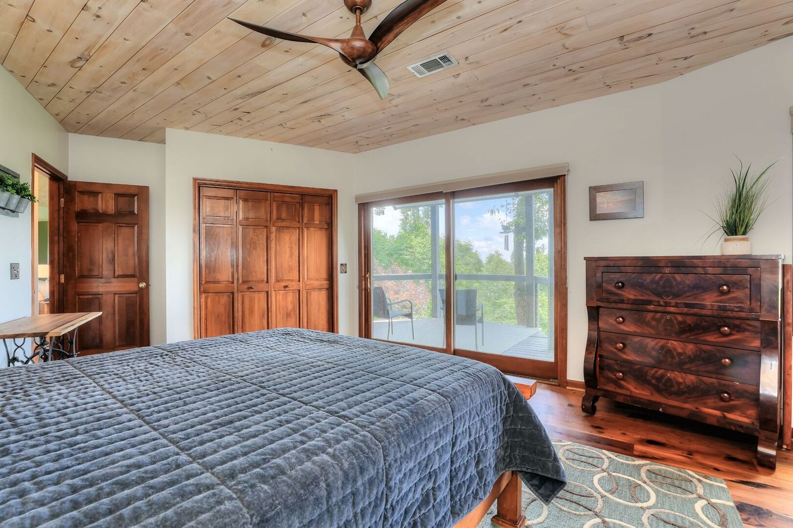 Among the other bedrooms, there are 3 queen-size beds. Another bedroom has its own balcony as well! And every bedroom has bright windows with lovely scenery. In total, there are 4½ bathrooms with 4 walk-in showers, plus the garden tub. Enjoy accommodations for up to 8 guests at this Big Canoe rental in the Blue Ridge Mountains.