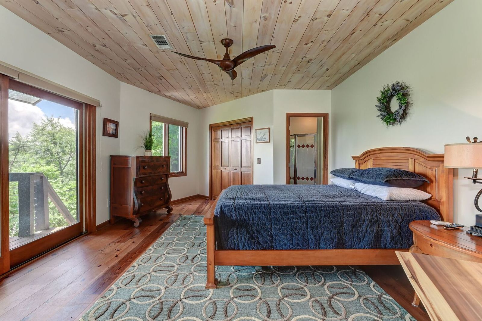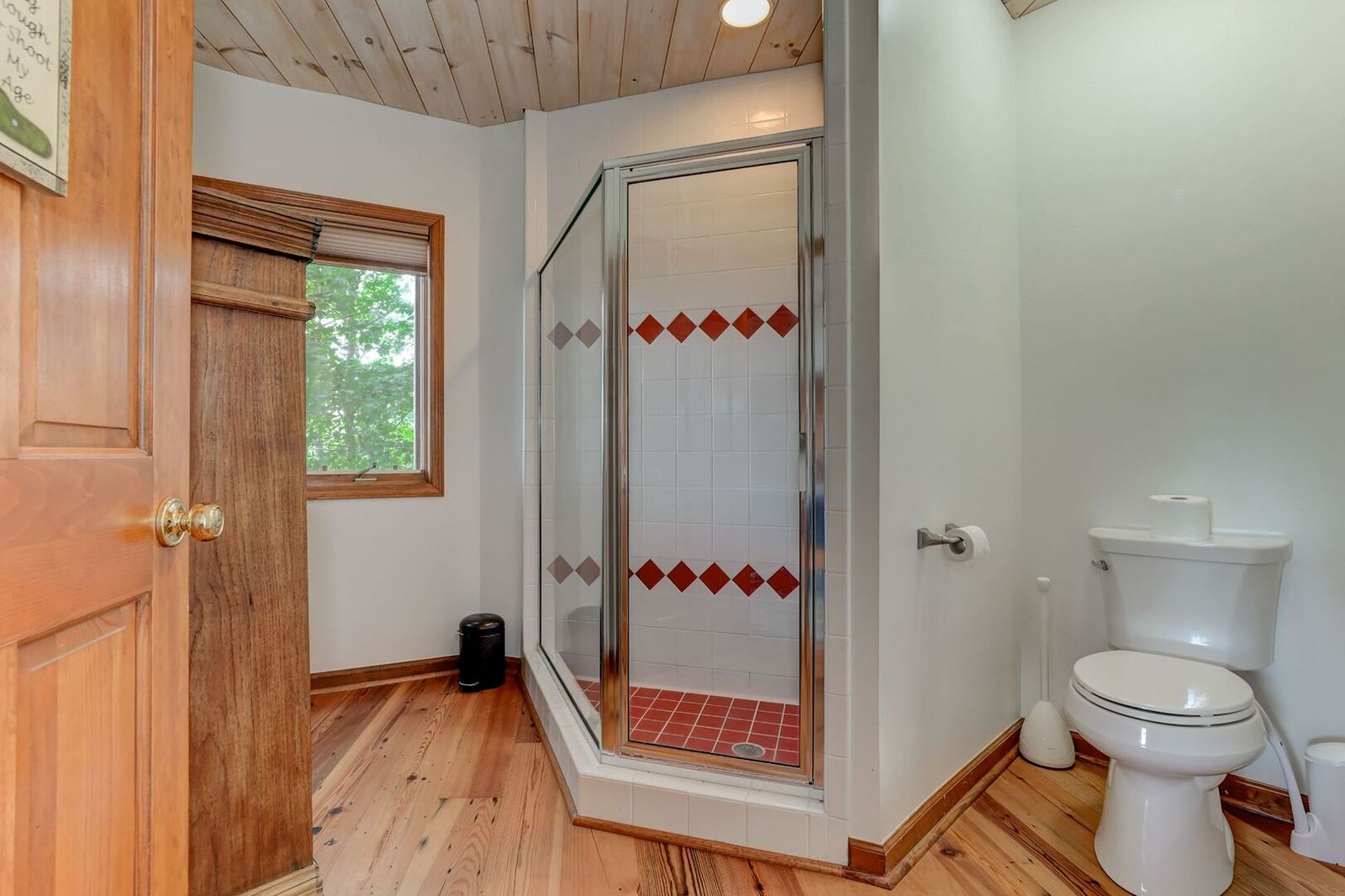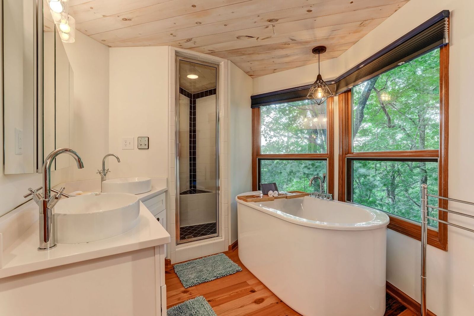 Among the other bedrooms, there are 3 queen-size beds. Another bedroom has its own balcony as well! And every bedroom has bright windows with lovely scenery. In total, there are 4½ bathrooms with 4 walk-in showers, plus the garden tub. Enjoy accommodations for up to 8 guests at this Big Canoe rental in the Blue Ridge Mountains.