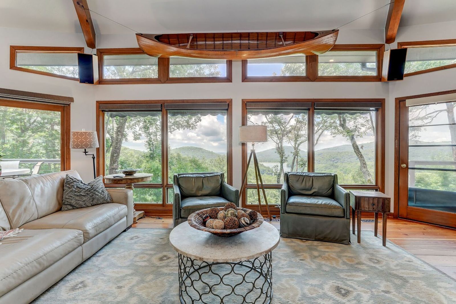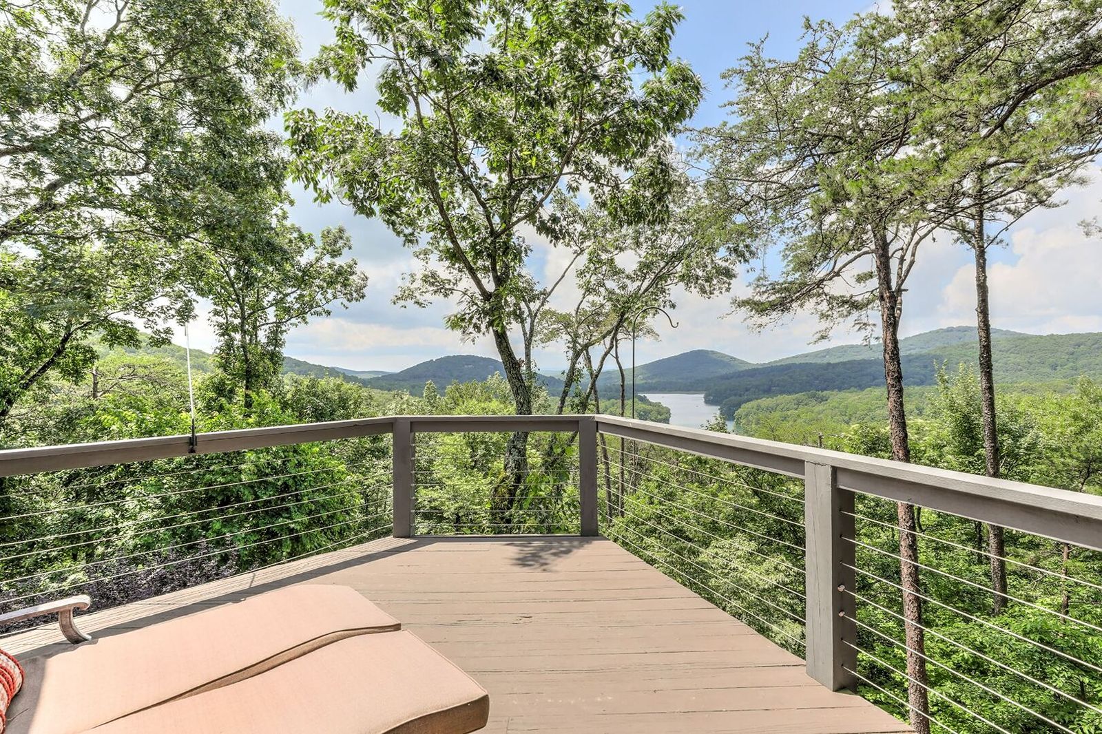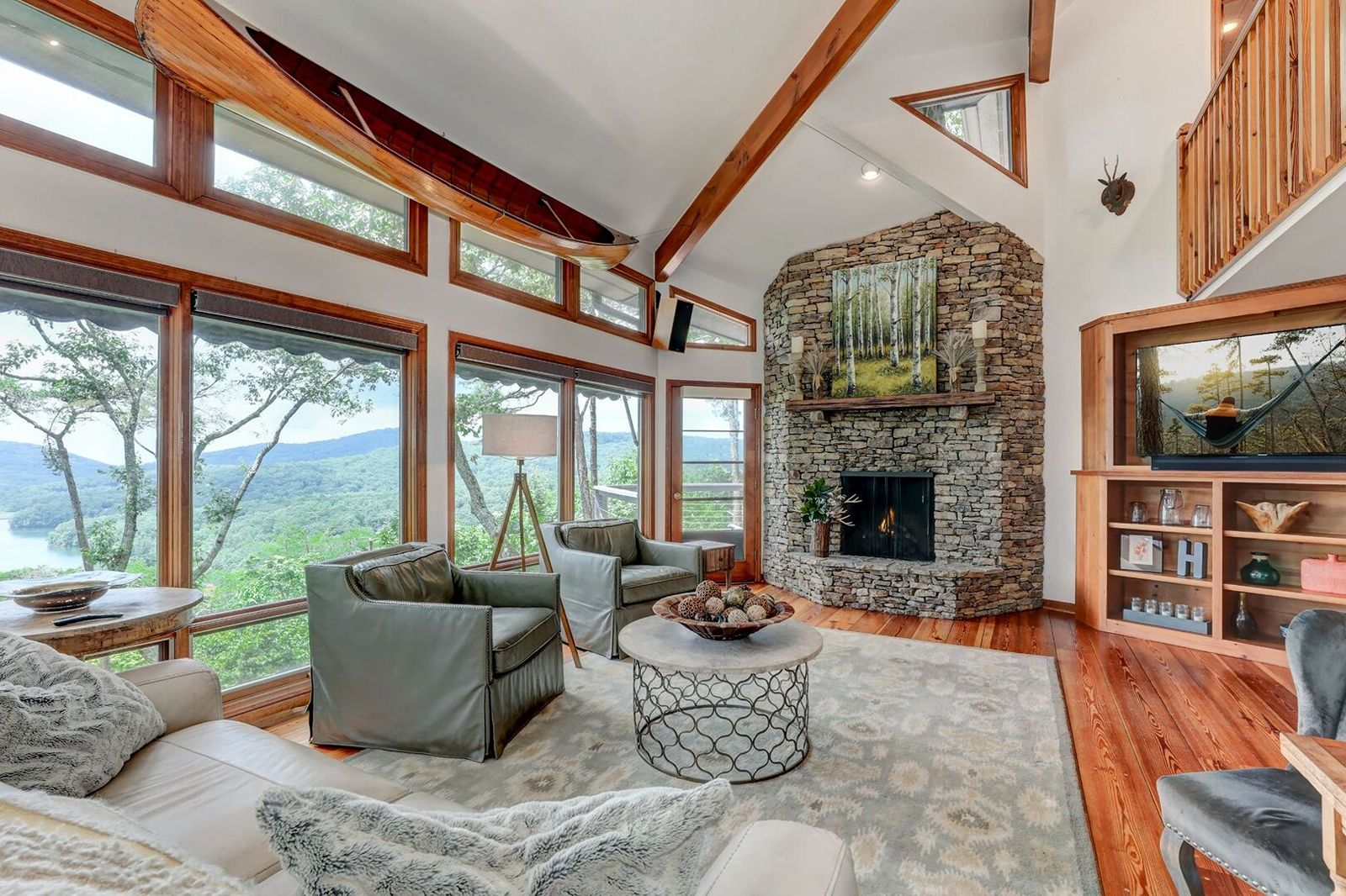 Spot the mesmerizing Blue Ridge Mountains, dipping valleys, and towering trees. This Big Canoe mountain home is completely secluded so you won’t have to worry about neighbors or noise. And as another bonus, there’s a fire table for fun chats and sips with friends and family.