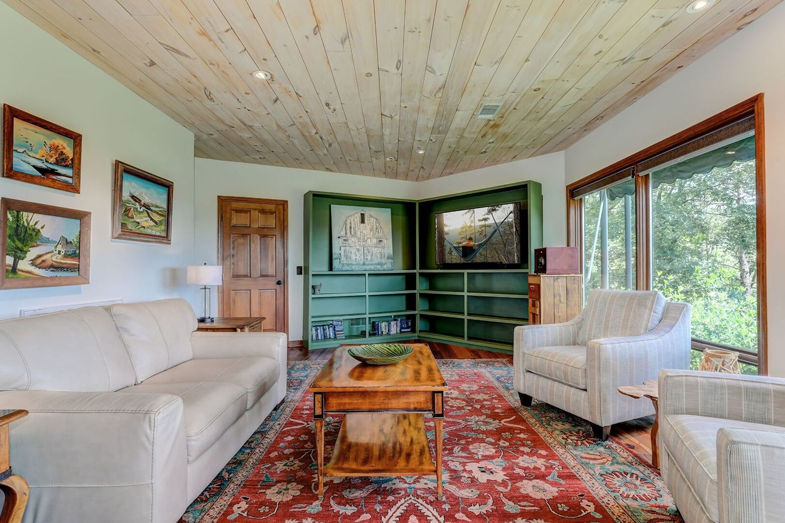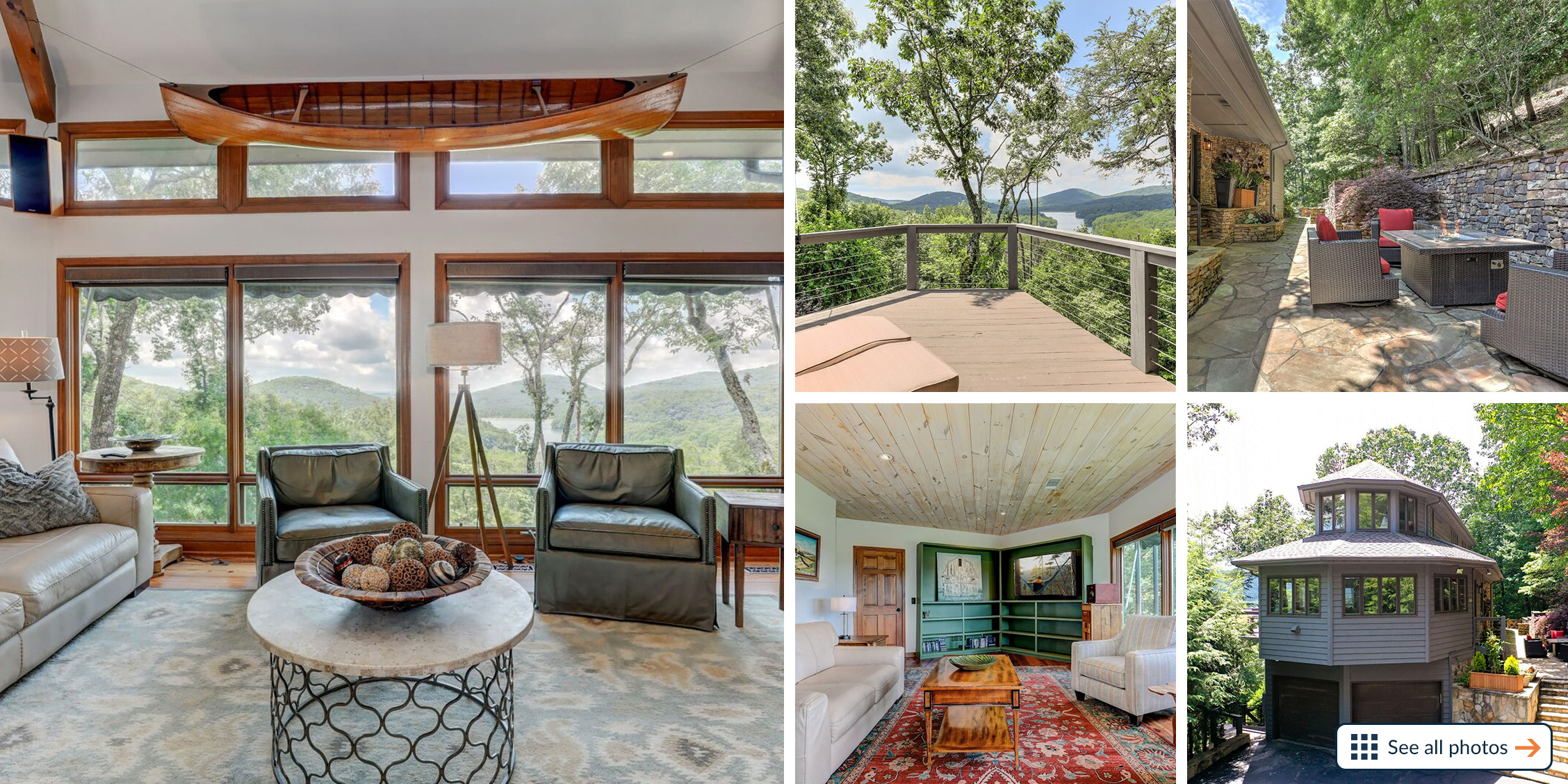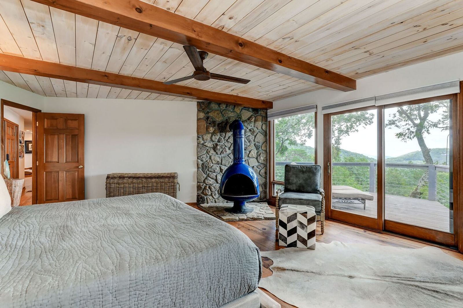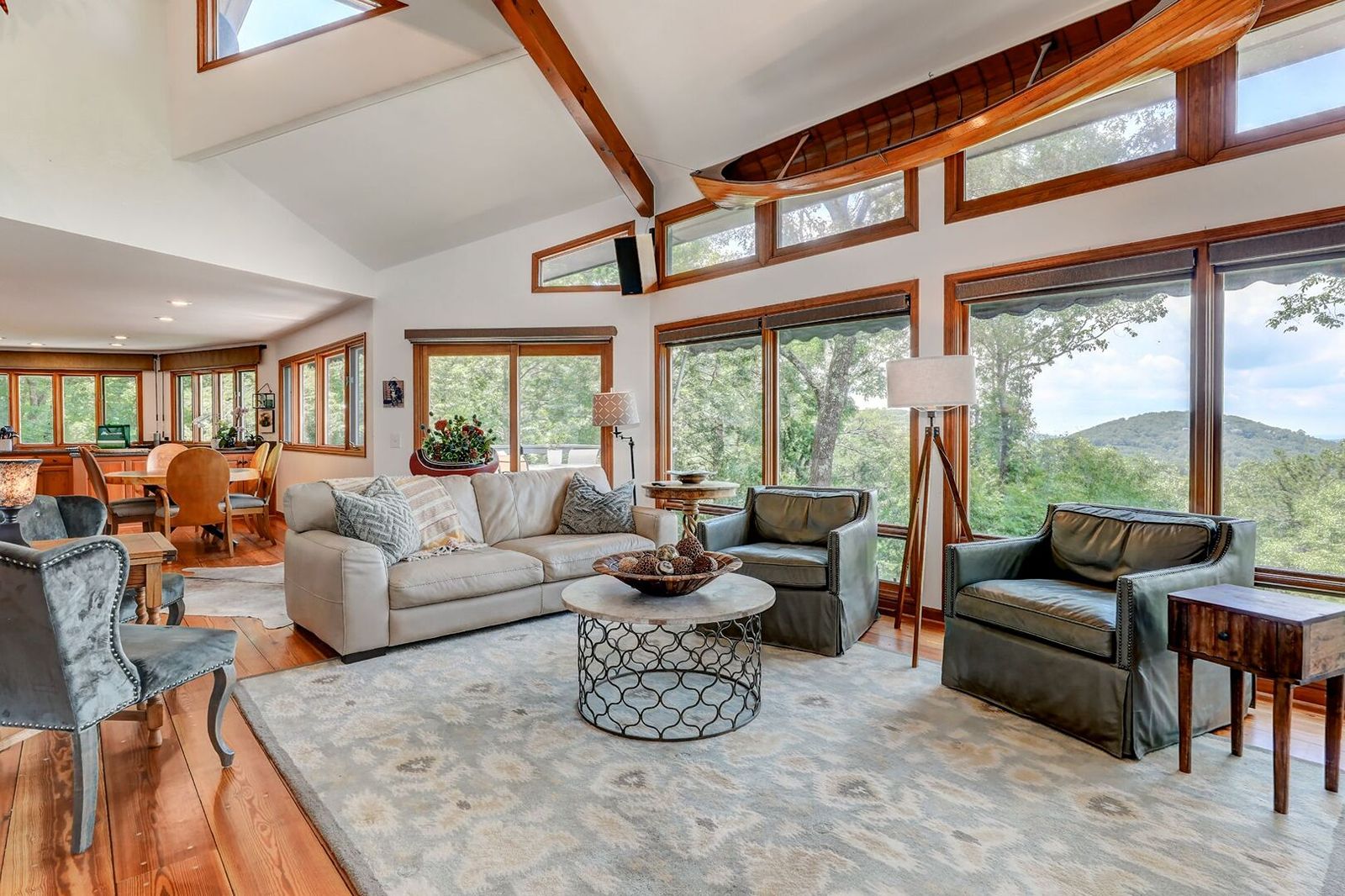 Spot the mesmerizing Blue Ridge Mountains, dipping valleys, and towering trees. This Big Canoe mountain home is completely secluded so you won’t have to worry about neighbors or noise. And as another bonus, there’s a fire table for fun chats and sips with friends and family.