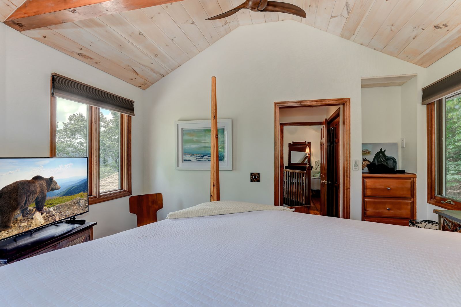 Among other bedrooms, there are 3 queen-size beds. Another bedroom has its own balcony as well! And every bedroom has bright windows with lovely scenery. In total, there are 4½ bathrooms with 4 walk-in showers, plus the garden tub. Enjoy accommodations for up to 6 guests at this Big Canoe rental in the Blue Ridge Mountains.