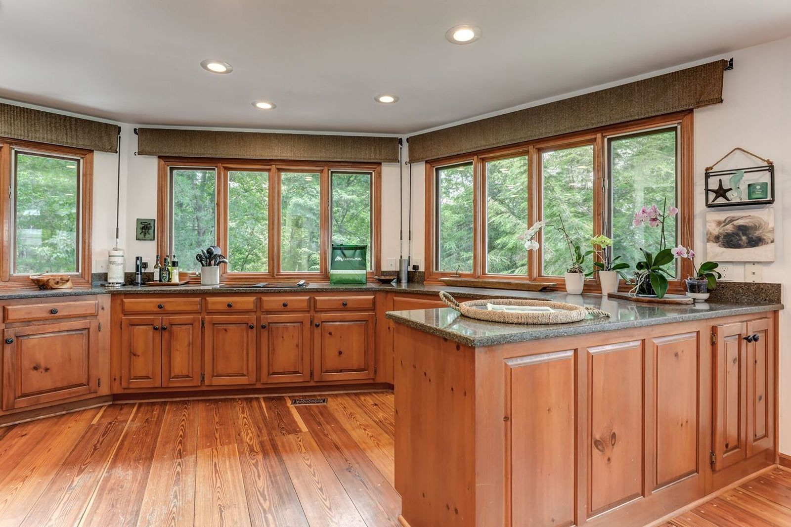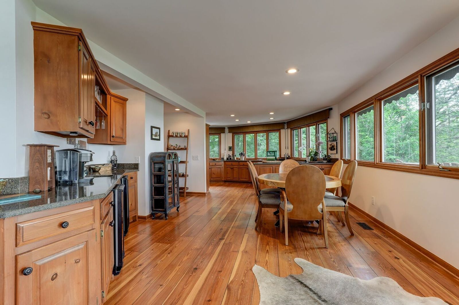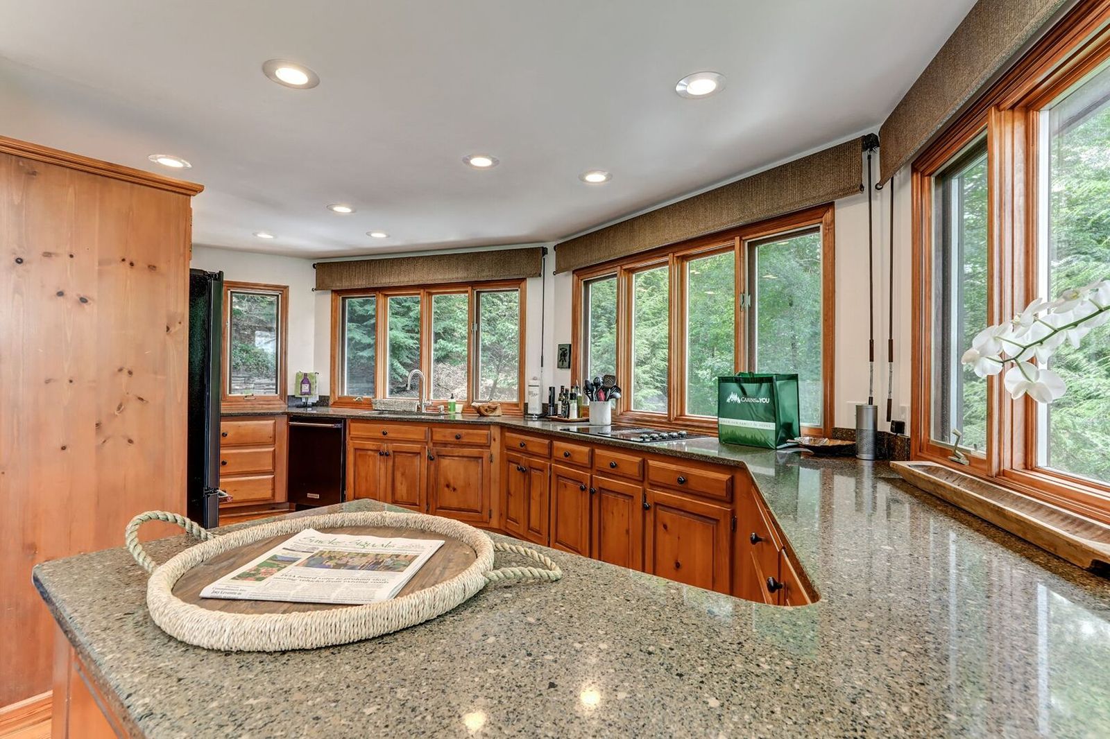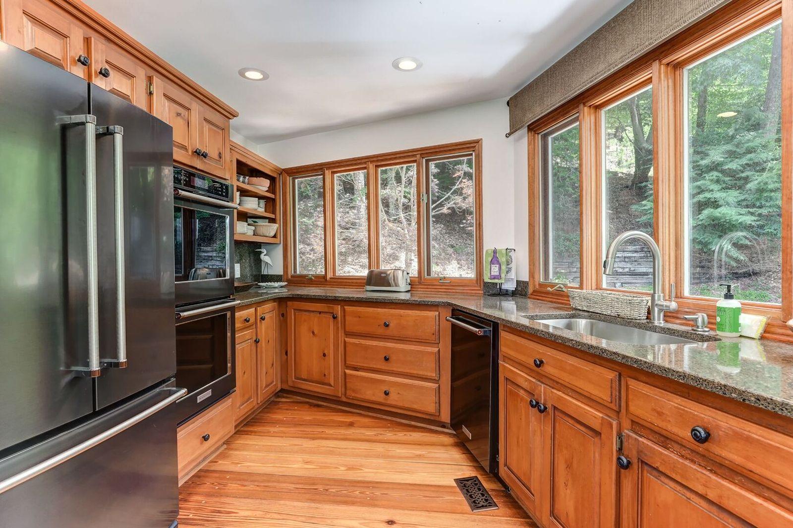 Wander into the fully equipped kitchen for breakfast, lunch, dinner, snacks, and midnight munchies at your accommodating Big Canoe rental home. Start with a beverage from the wet bar that doubles as a coffee bar — with a wine fridge, a Keurig, and an ice machine. Pass the dining table and reach the heart of the kitchen, where you’ll find plenty of counter space, nature-riffic views all around, and slate appliances.