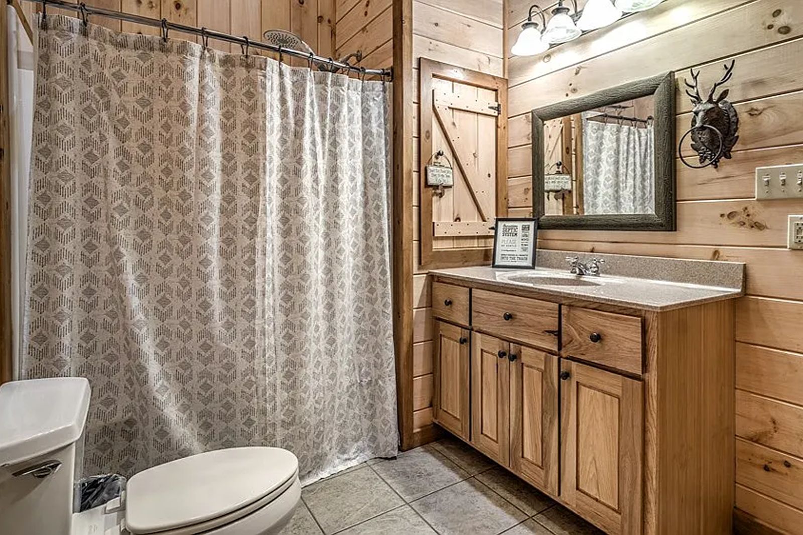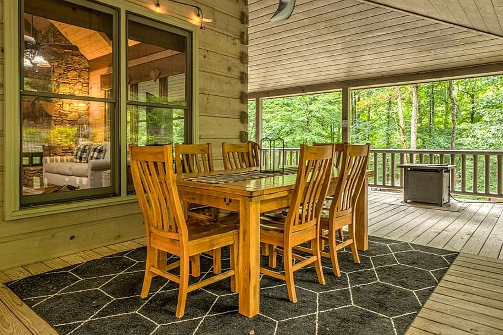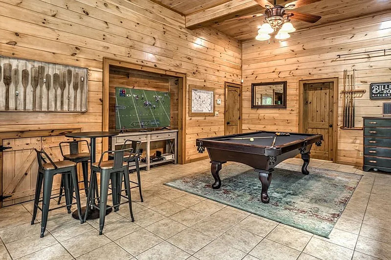 Tucked among towering trees, this secluded cabin has everything you need to prepare meals, hang out, and reconnect with loved ones. Start mornings with freshly brewed coffee from the full kitchen before stepping onto the main deck to inhale that crisp mountain air. An outdoor TV, hammock, sofa, and fire table beckon downtime outside. You can even light the grill for a barbecue while the kids play cornhole before heading back inside for rounds of pool, foosball, and arcade classics in the game room!