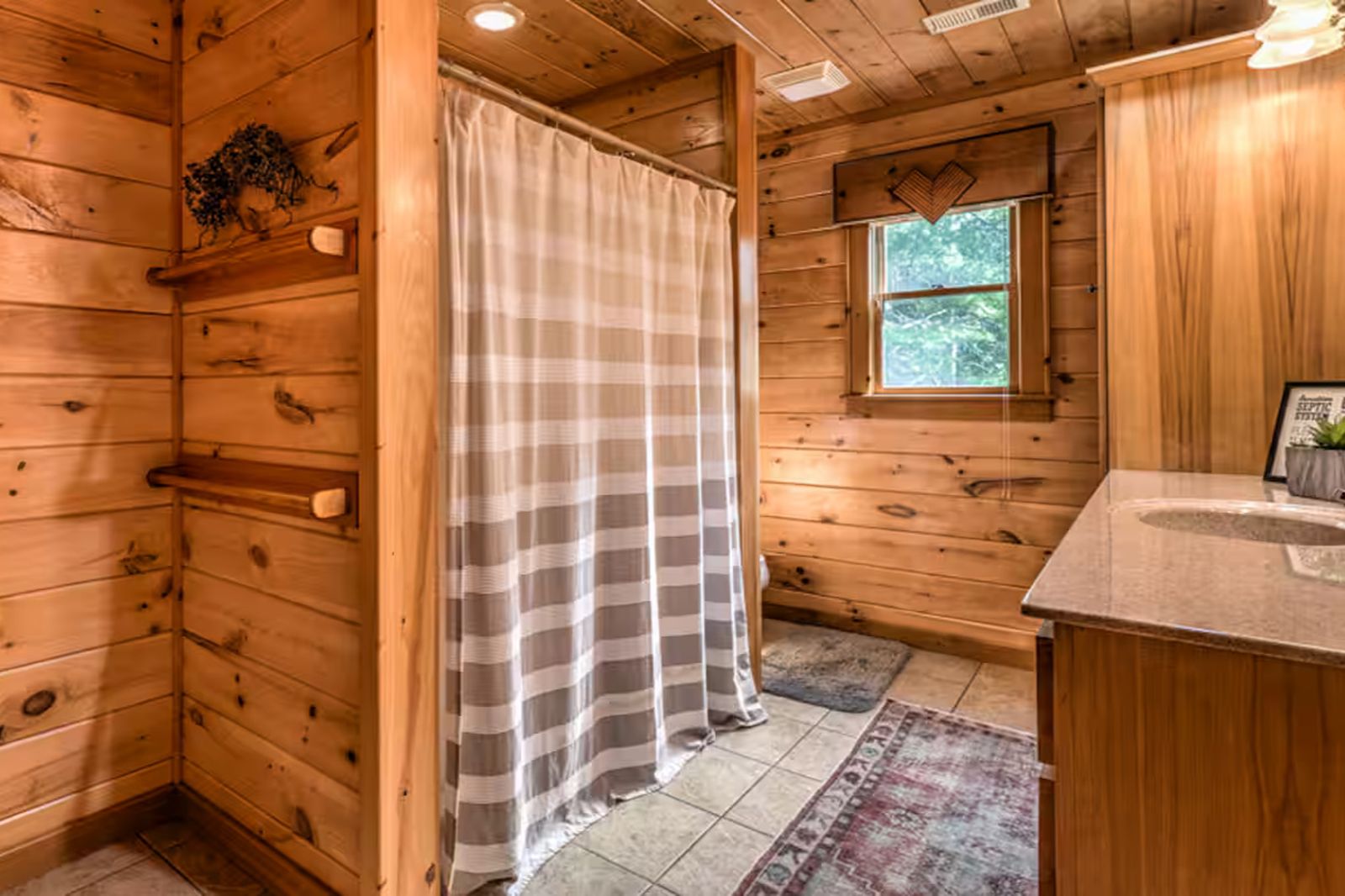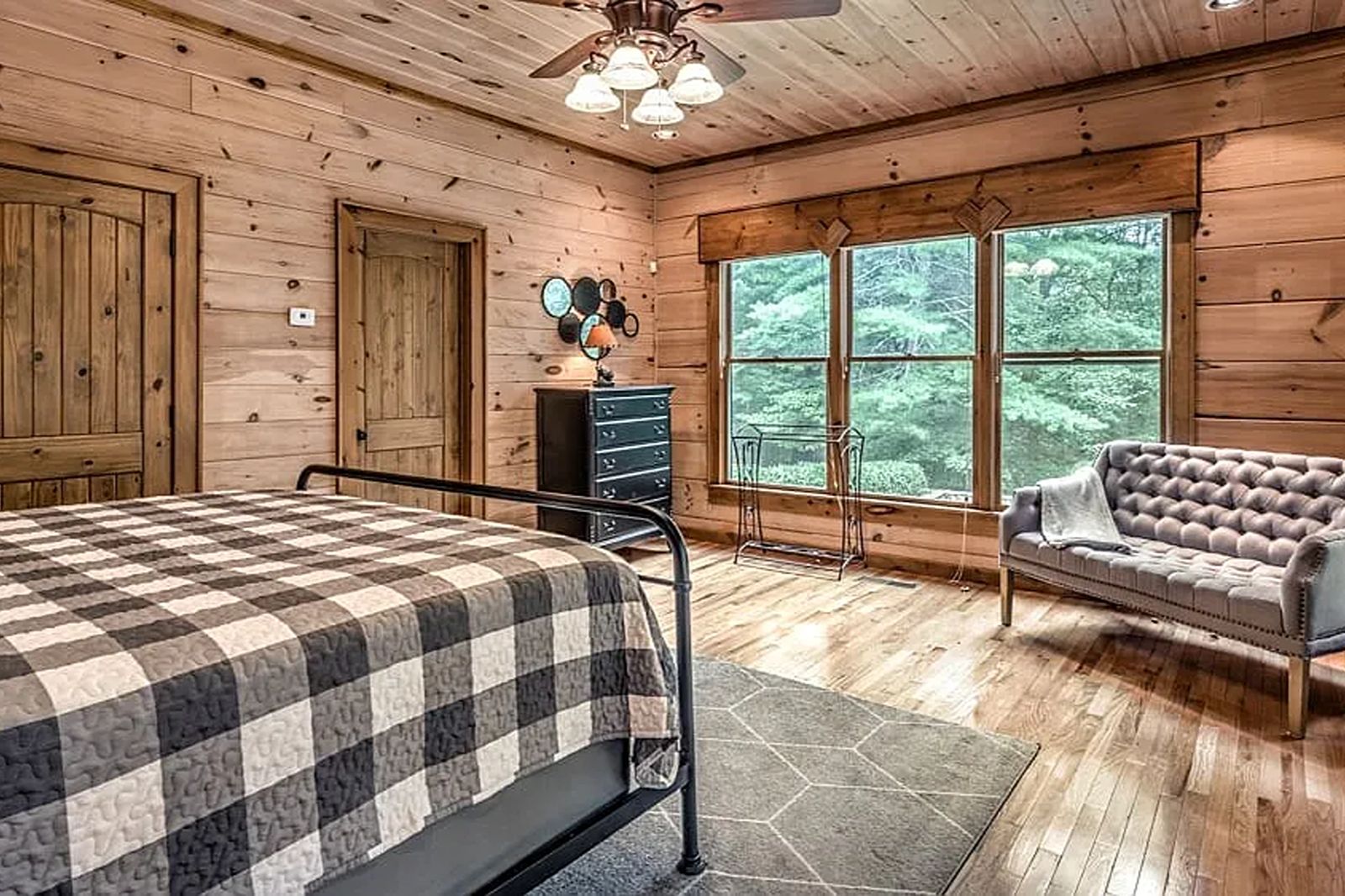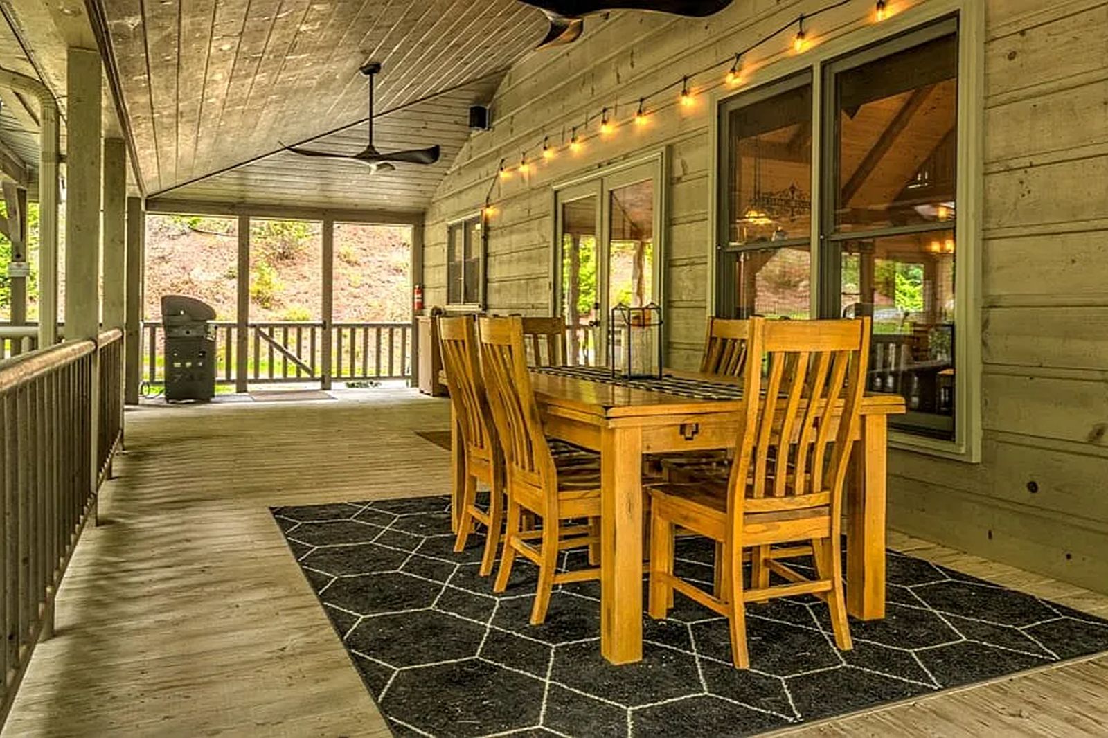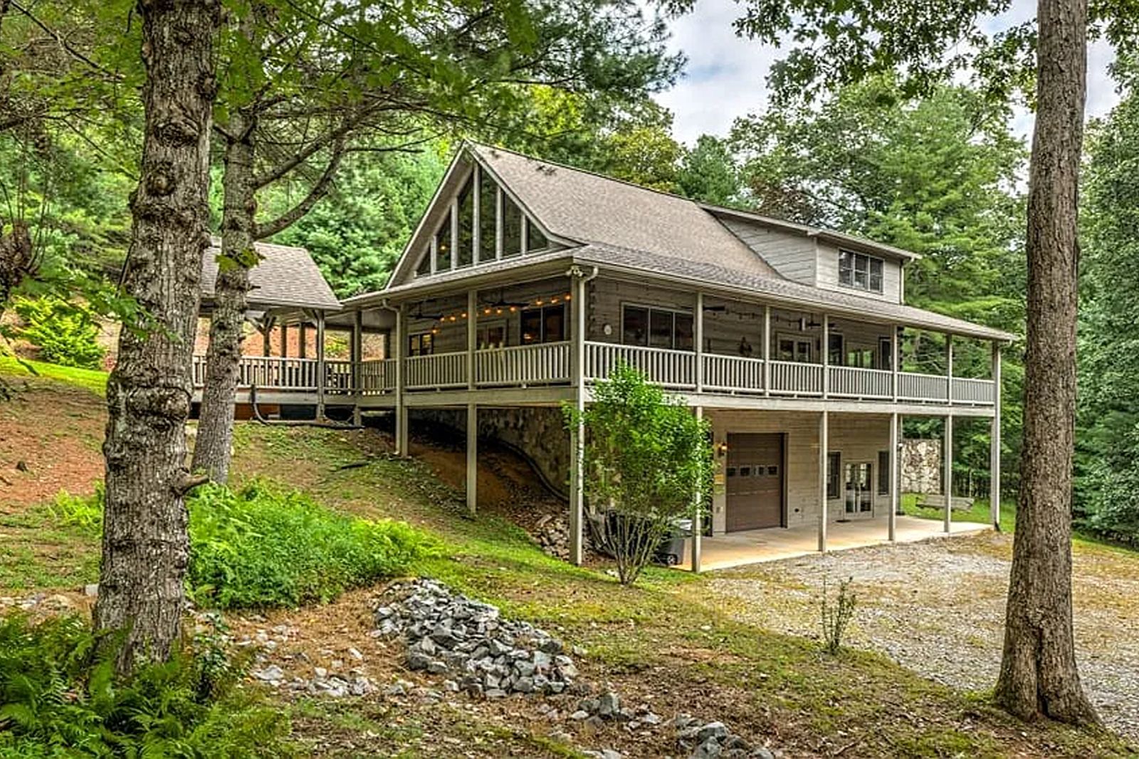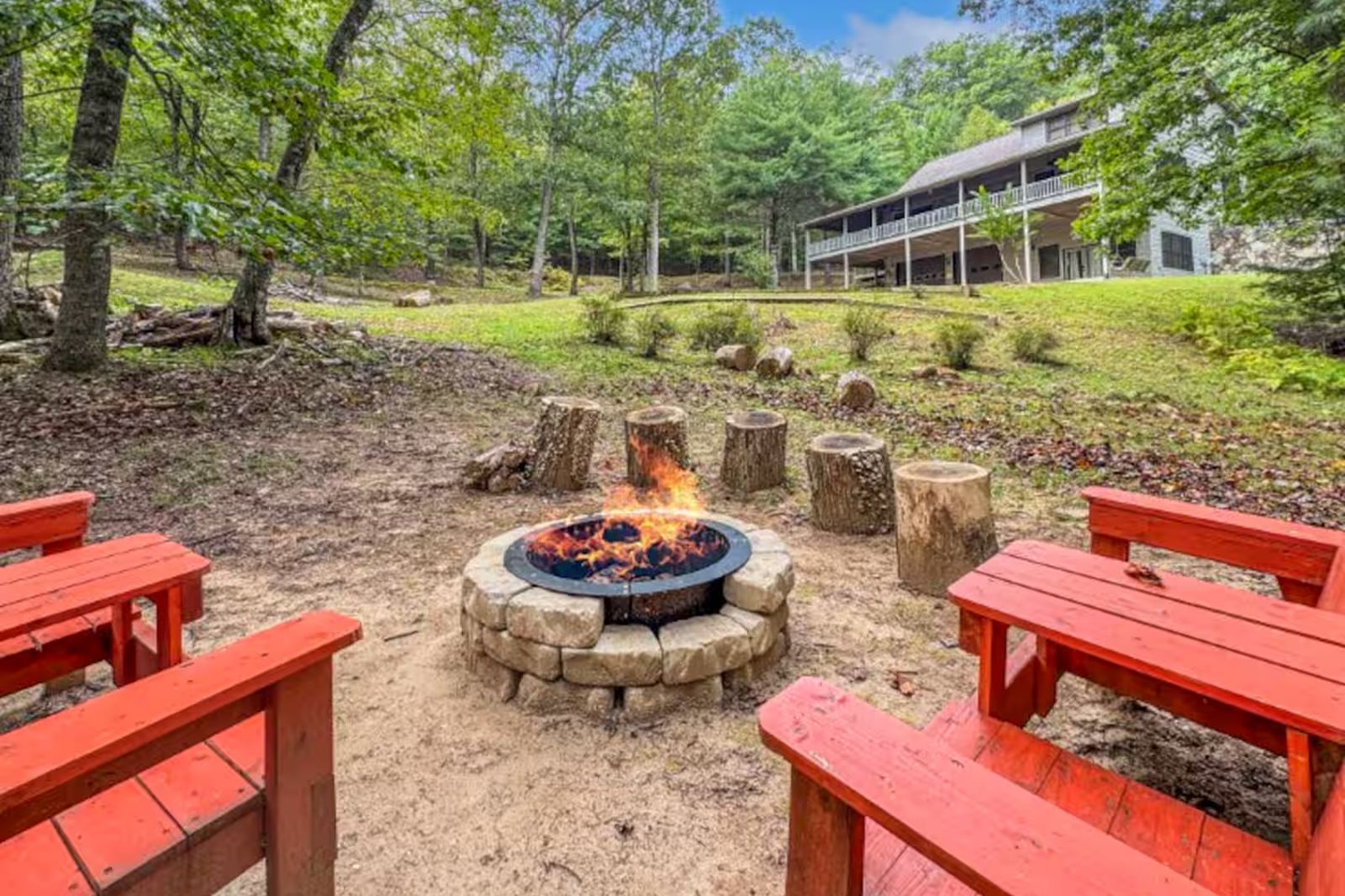 Explore the Aska Adventure Area trails, catch-and-release pond, and mini golf course in The Lily Pad Village just minutes from Kick Aska Lodge — where you can soothe tired muscles in a bubbling hot tub, host epic game nights with friends, and sip wine by a cozy fireplace. Pet friendly and inviting for large groups, this beautiful Blue Ridge Mountain lodge offers a wonderful place to stay for your memorable getaway in North Georgia.