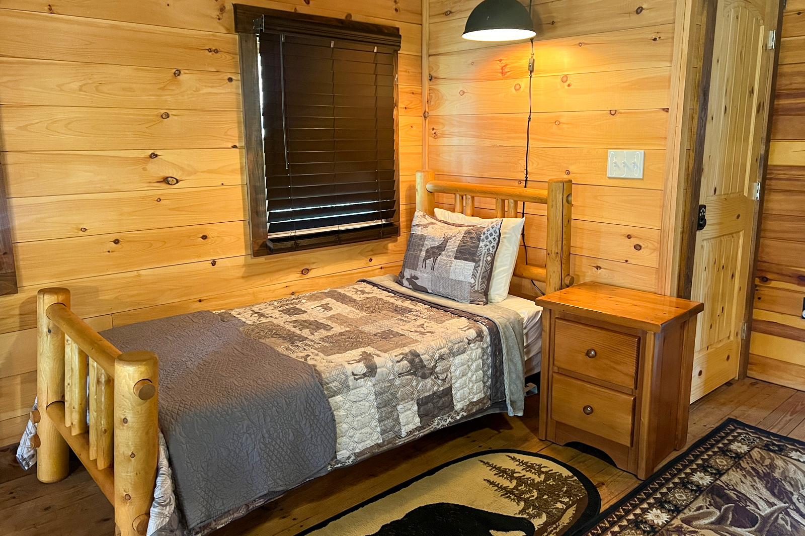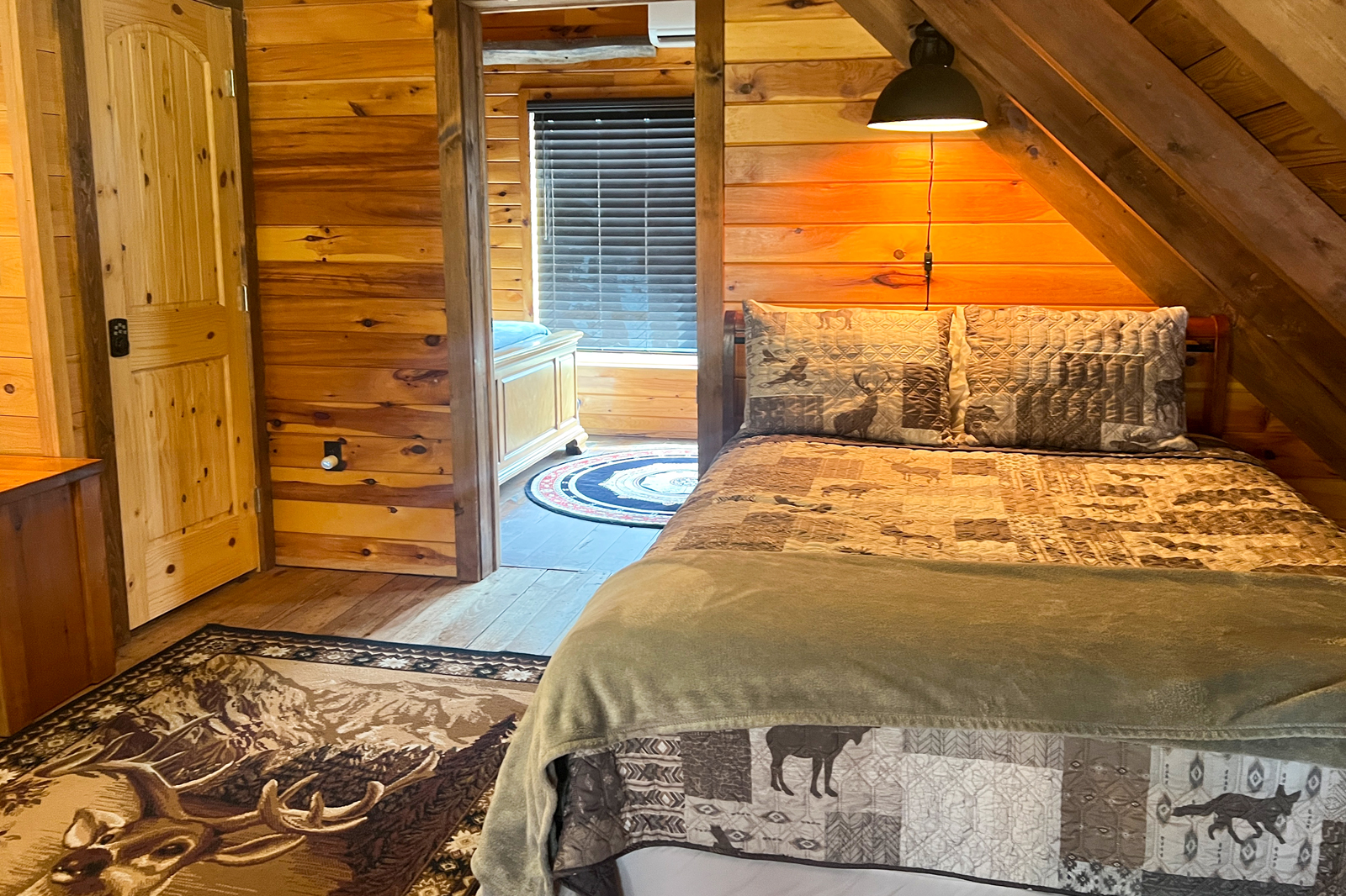 As you lay down to rest and recharge at your creekfront North Georgia cabin rental, dream of your time strolling through the scenic Serenberry Vineyards & Winery, playing at Lilly Pad Village, or ziplining through the treetops. There is 1 bedroom with a queen-size bed and a loft with a queen-size bed plus a twin-size bed — for up to 5 guests.