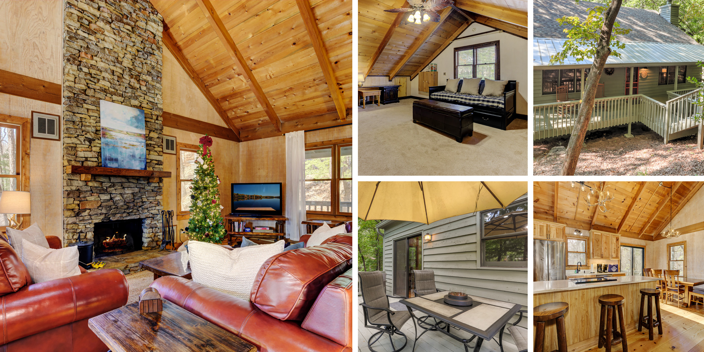 Relax in front of the big screen TV, watch TV in bed, or break out the board games for a family game night at your cabin rental in Big Canoe. There are rocking chairs on the porch, so you can enjoy the fresh mountain air and relax. For lunch, toss some burgers on the gas grill and dine at the outdoor table with a fire table topper. And get cozy in front of the wood-burning fireplace on cool evenings in the Appalachian Mountains.