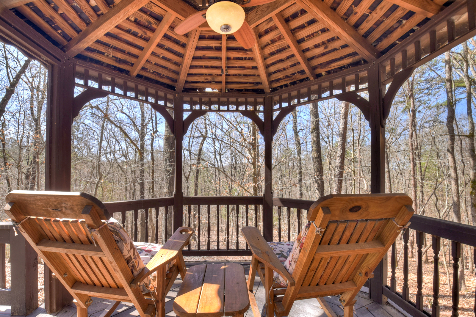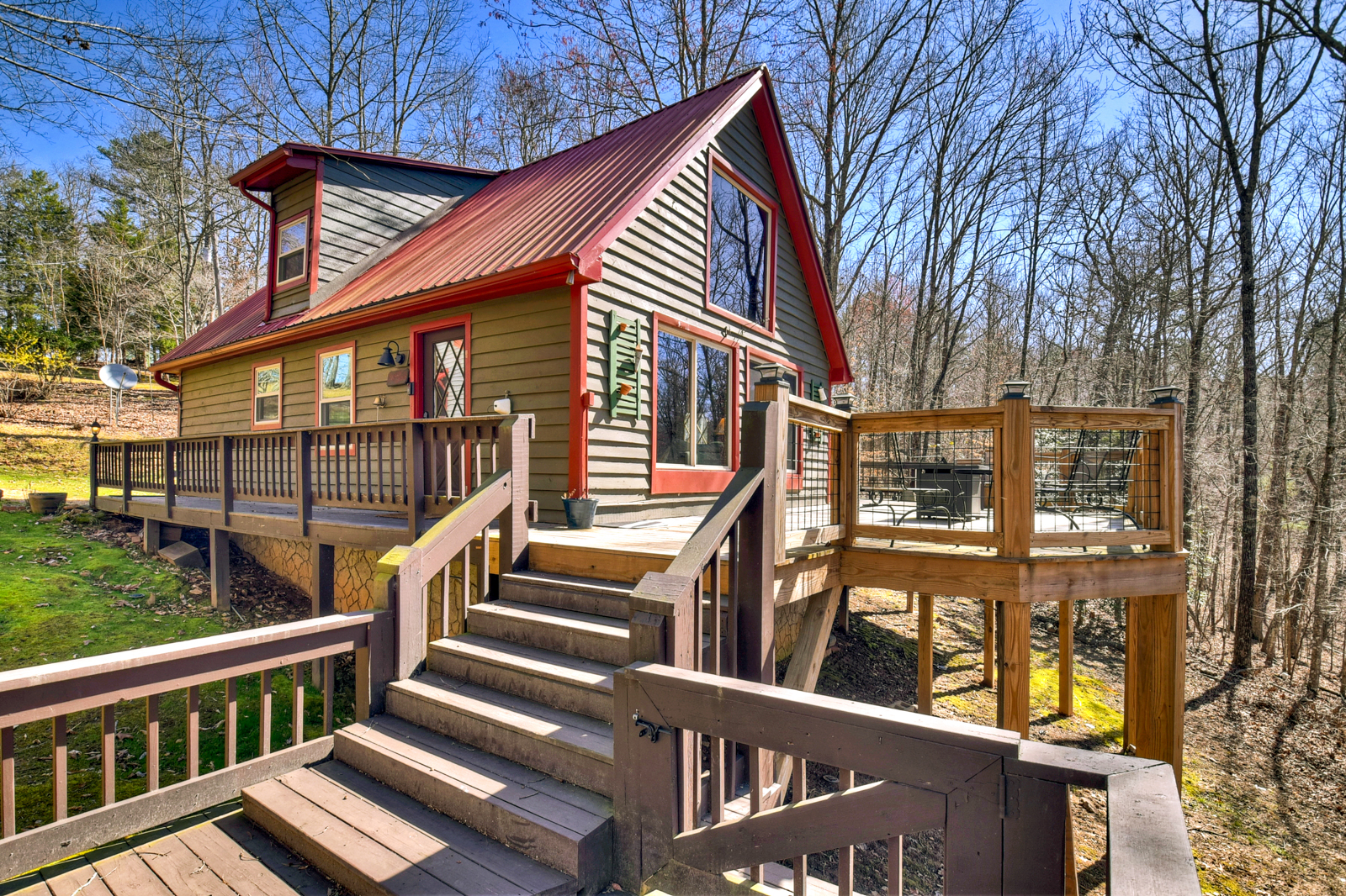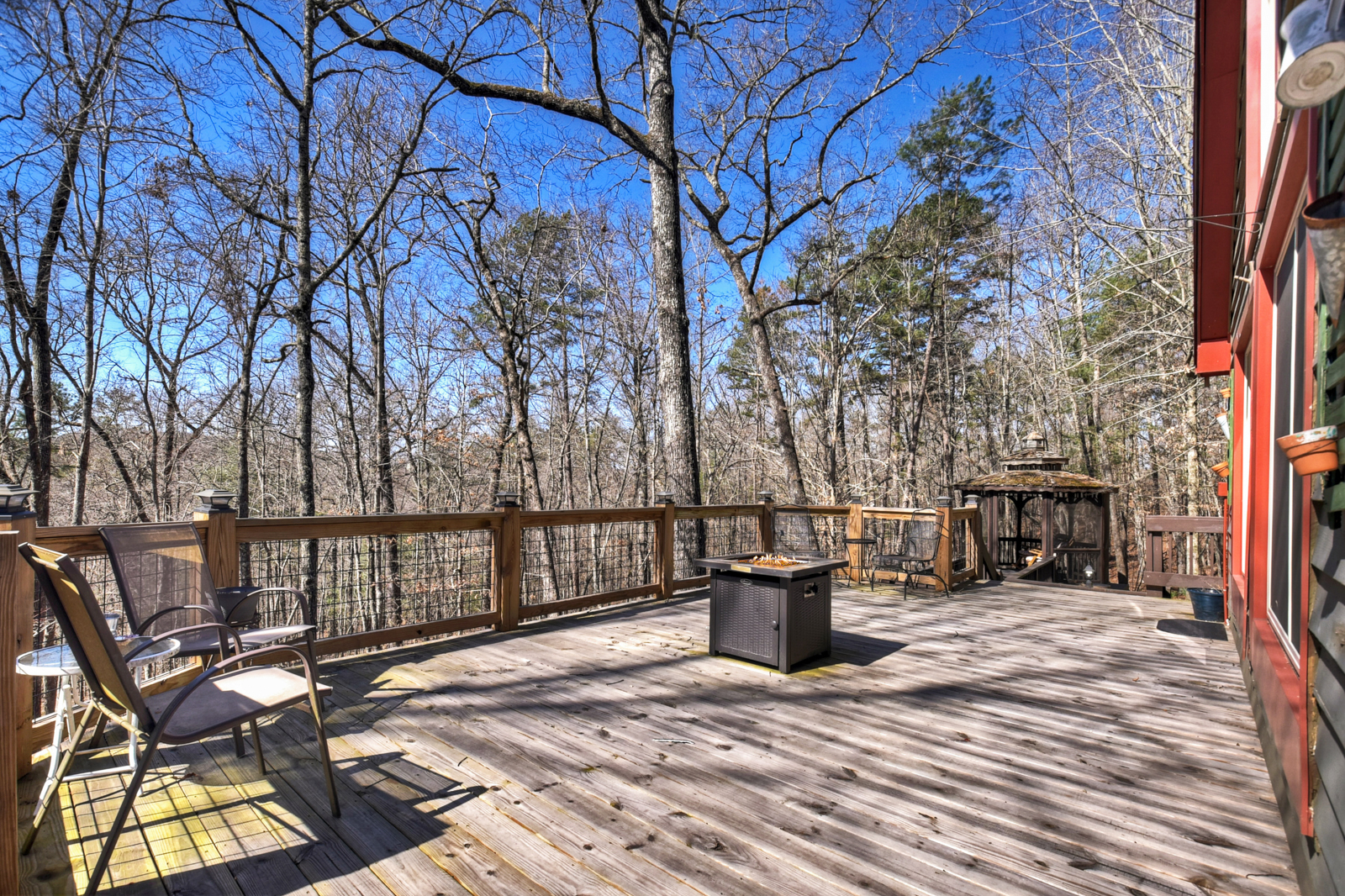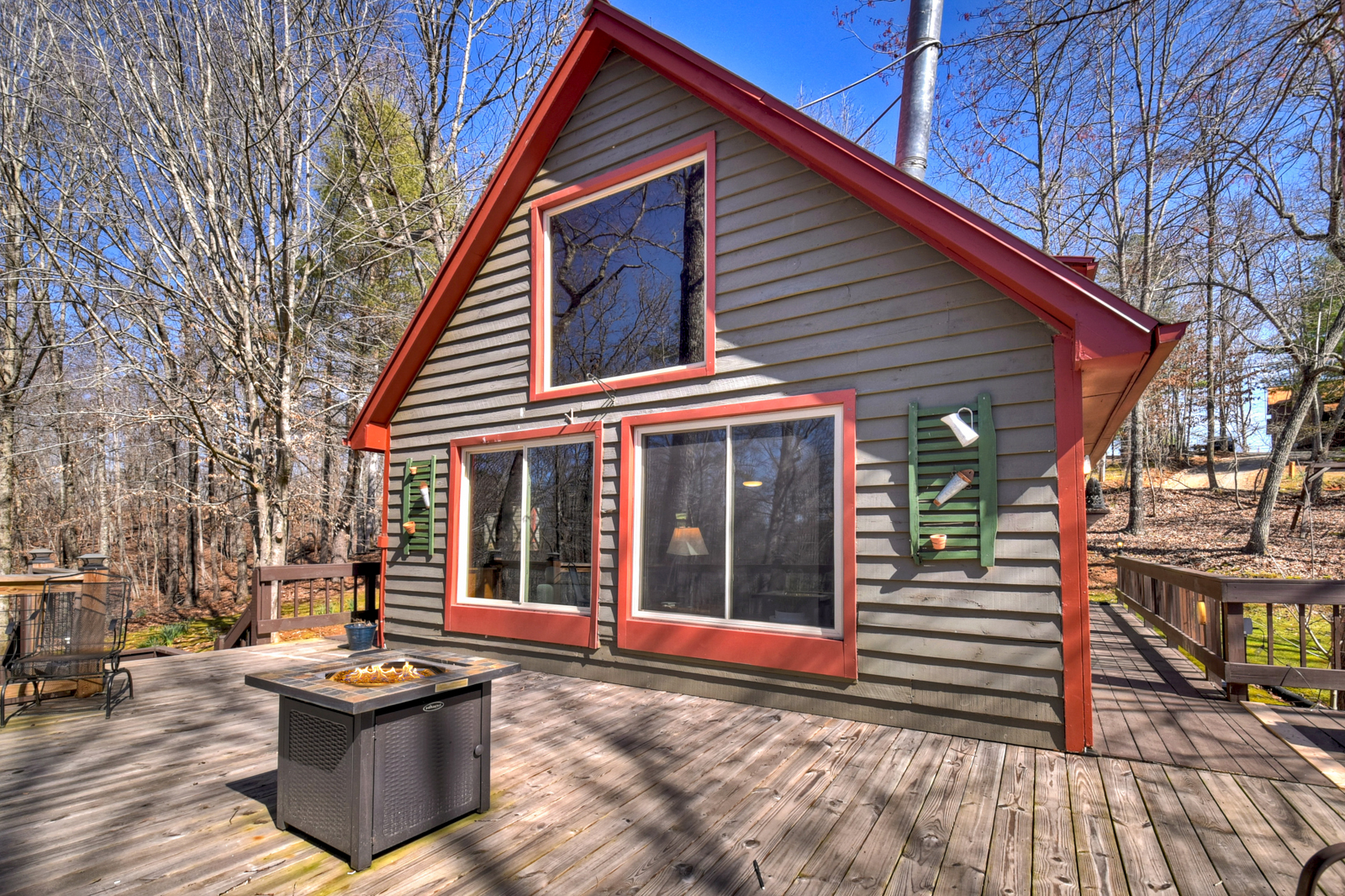 Step outside and experience the peaceful beauty that makes mountain cabin rentals so special. The deck and gazebo create a relaxing outdoor setting where guests can sip coffee, enjoy evening wine, or take in the fresh air. Play a round of cornhole, unwind in rocking chairs, or simply enjoy your private retreat surrounded by nature.