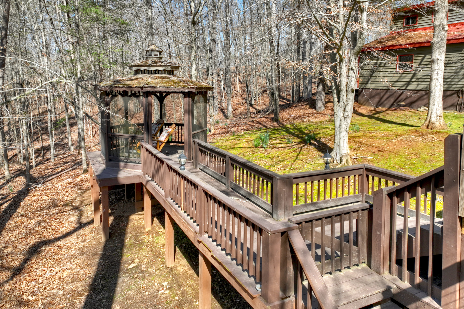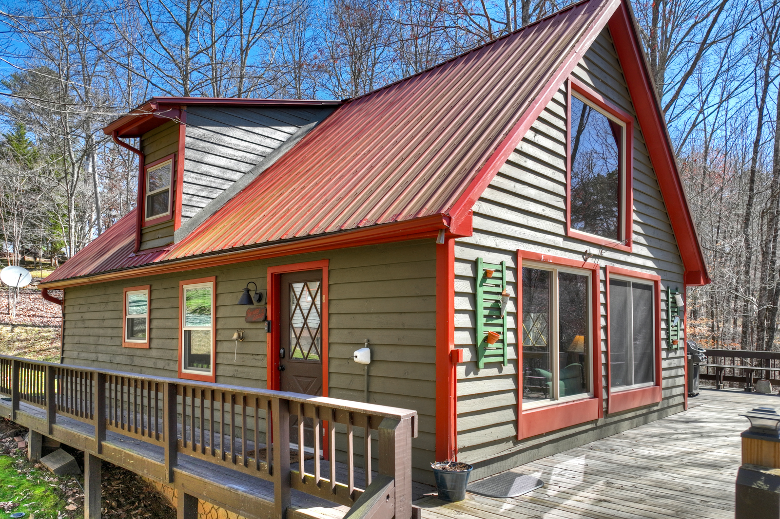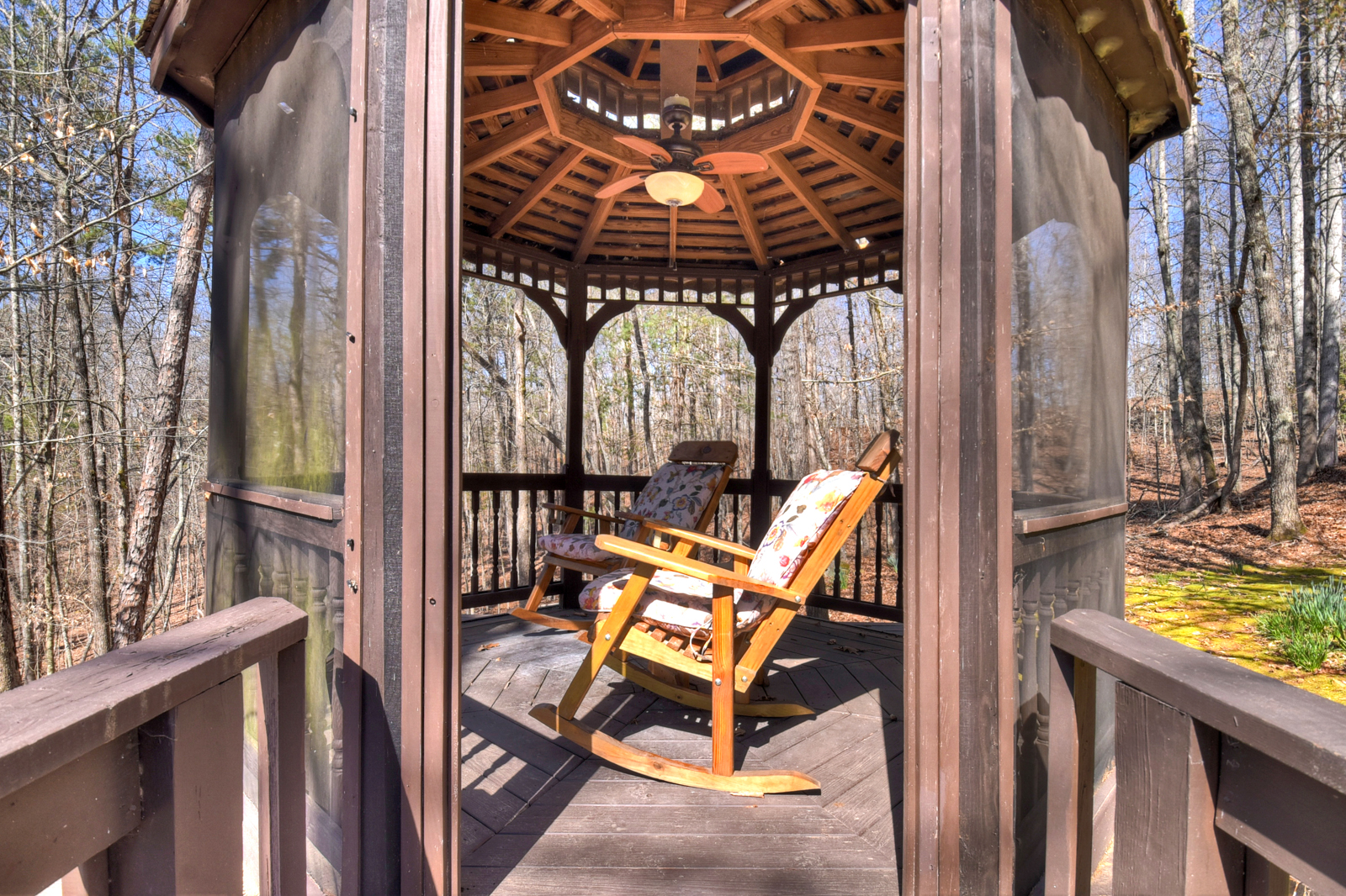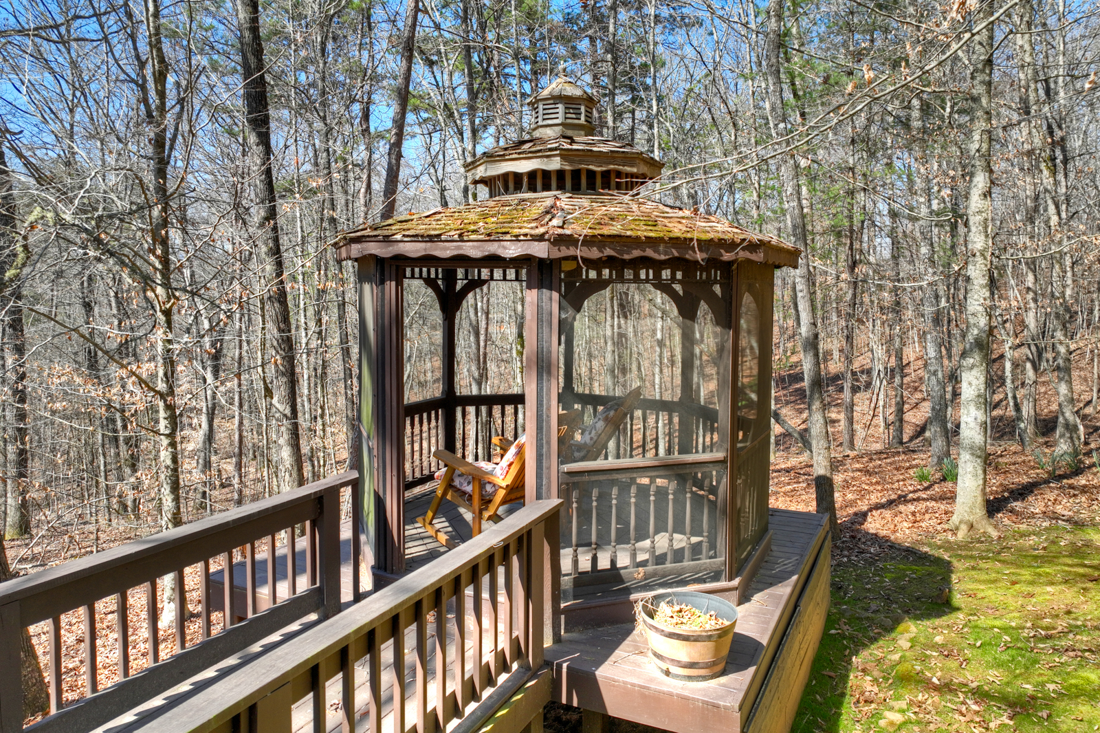 Step outside and experience the peaceful beauty that makes mountain cabin rentals so special. The deck and gazebo create a relaxing outdoor setting where guests can sip coffee, enjoy evening wine, or take in the fresh air. Play a round of cornhole, unwind in rocking chairs, or simply enjoy your private retreat surrounded by nature.