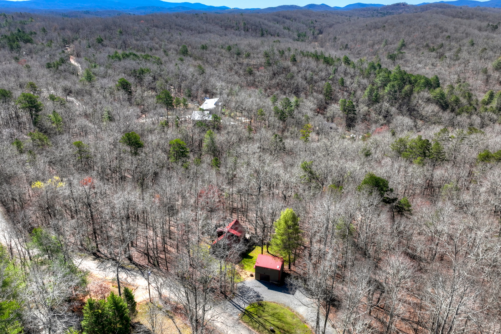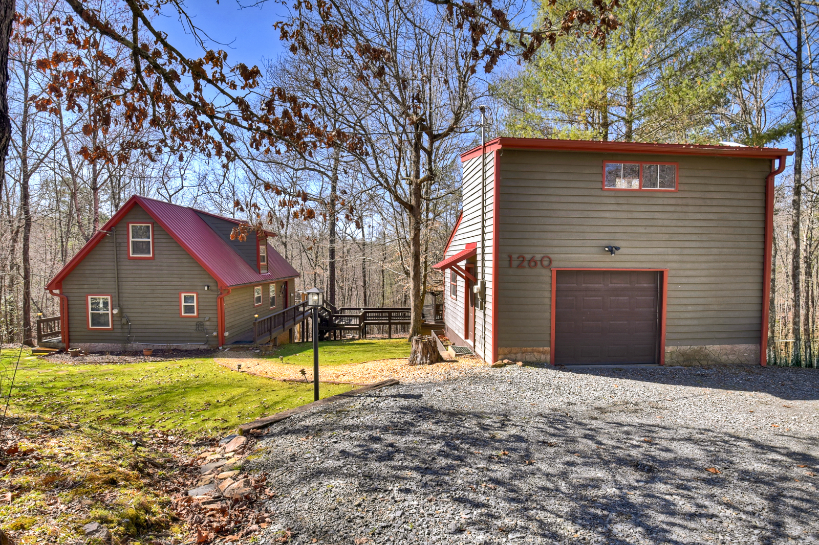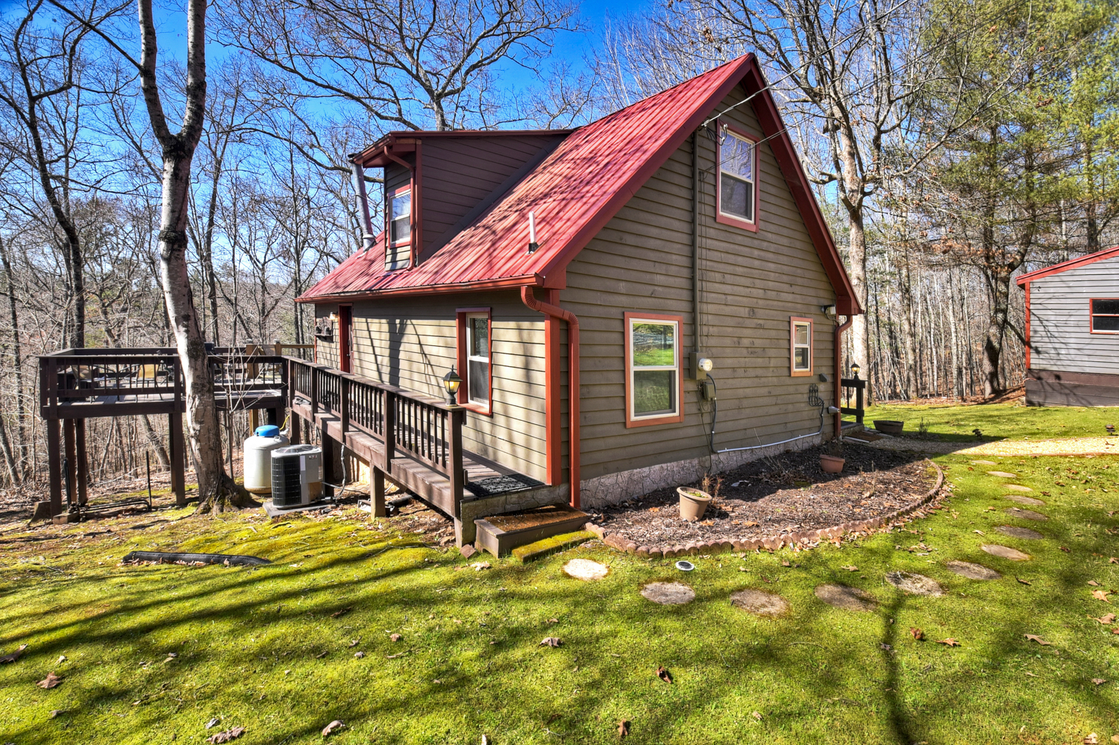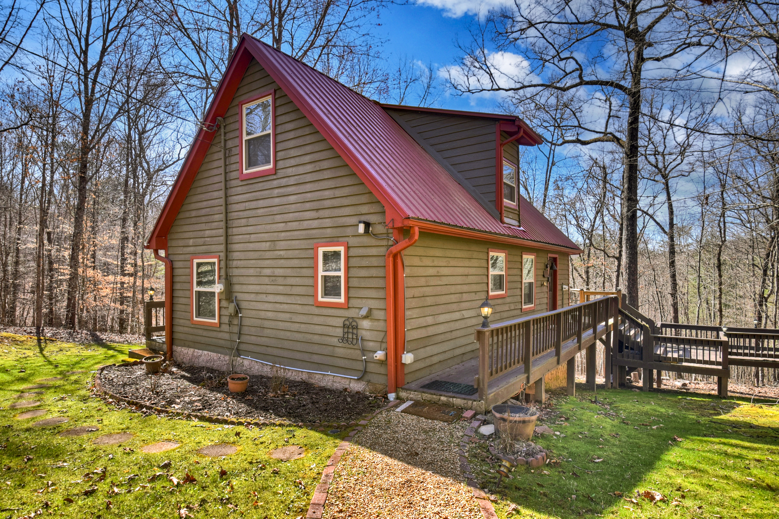 The cabin has a gravel driveway that is steep and curvy with parking for up to 3 vehicles; there are 10 steps to enter the property.