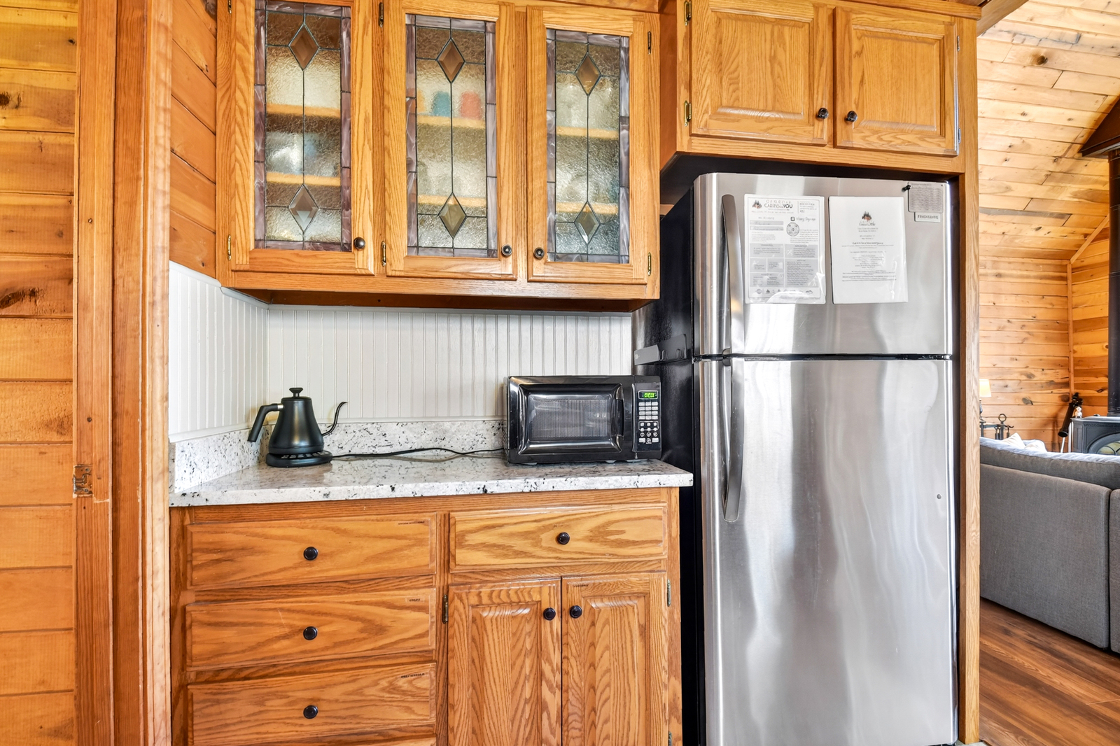 The fully equipped kitchen offers everything you need to prepare meals with ease during your stay. With ample counter space, essential appliances, and cookware, guests can enjoy anything from a quick breakfast before heading out to explore Ellijay or Blue Ridge, Georgia, to a home-cooked dinner shared together. It’s a functional and comfortable space that makes this vacation rental feel like home.