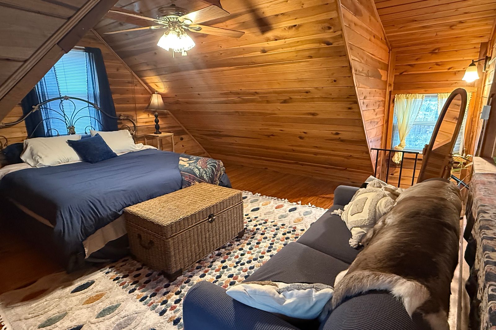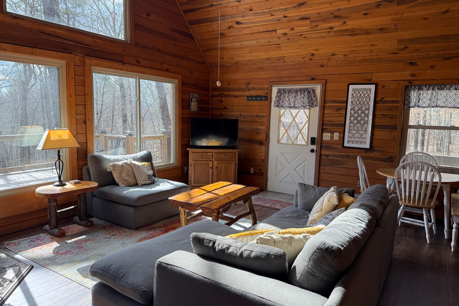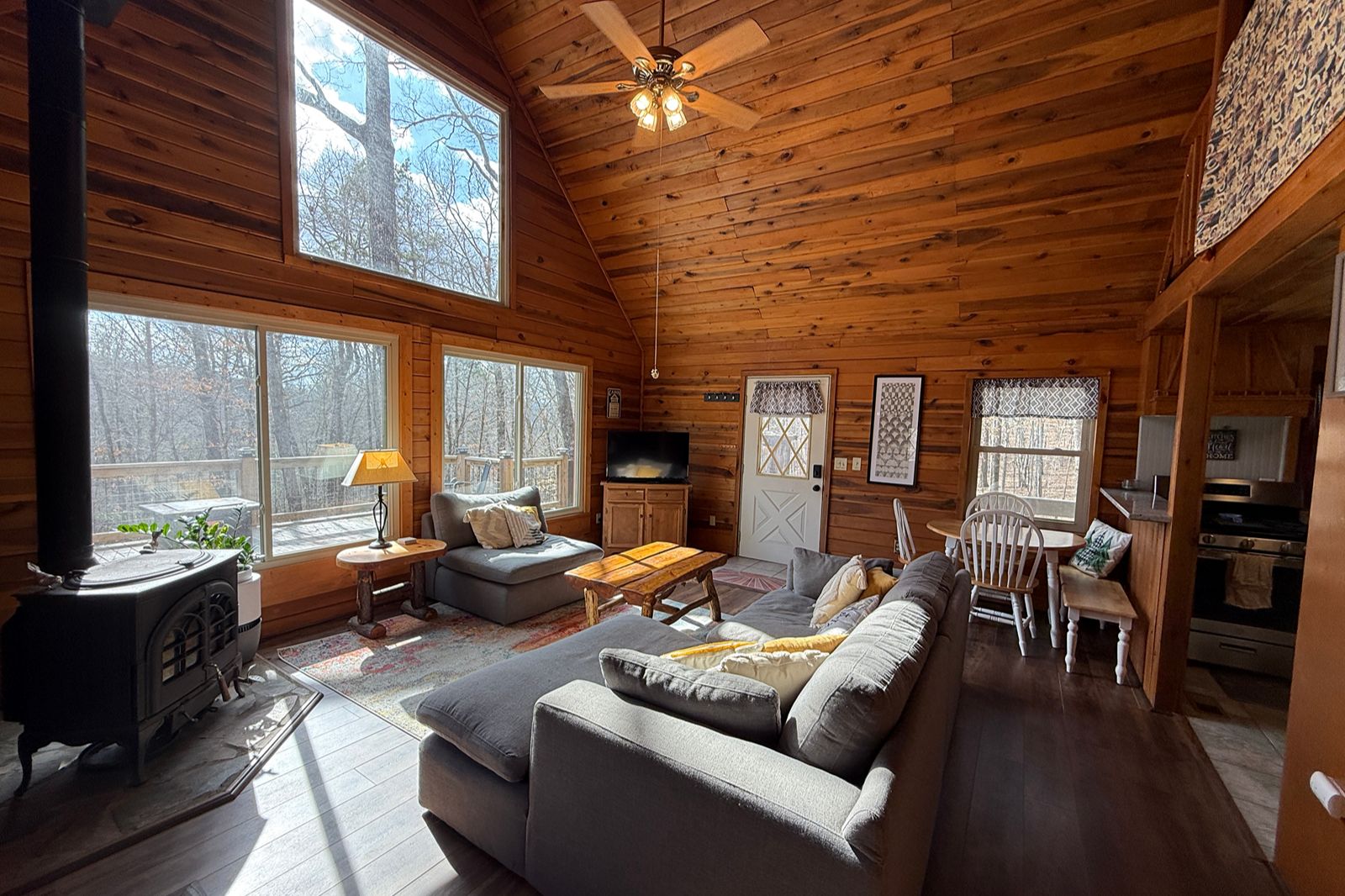 Escape to Serenity Woods, a cozy mountain retreat nestled in the peaceful North Georgia hills. Perfect for couples, small families, or friends, this charming cabin sleeps up to 4 guests and offers a serene setting to relax, unwind, and reconnect with nature. Step out onto the deck or into the gazebo to savor your morning coffee, evening wine, or simply the fresh mountain air, all while swaying gently in the rocking chairs and soaking in the tranquil surroundings.