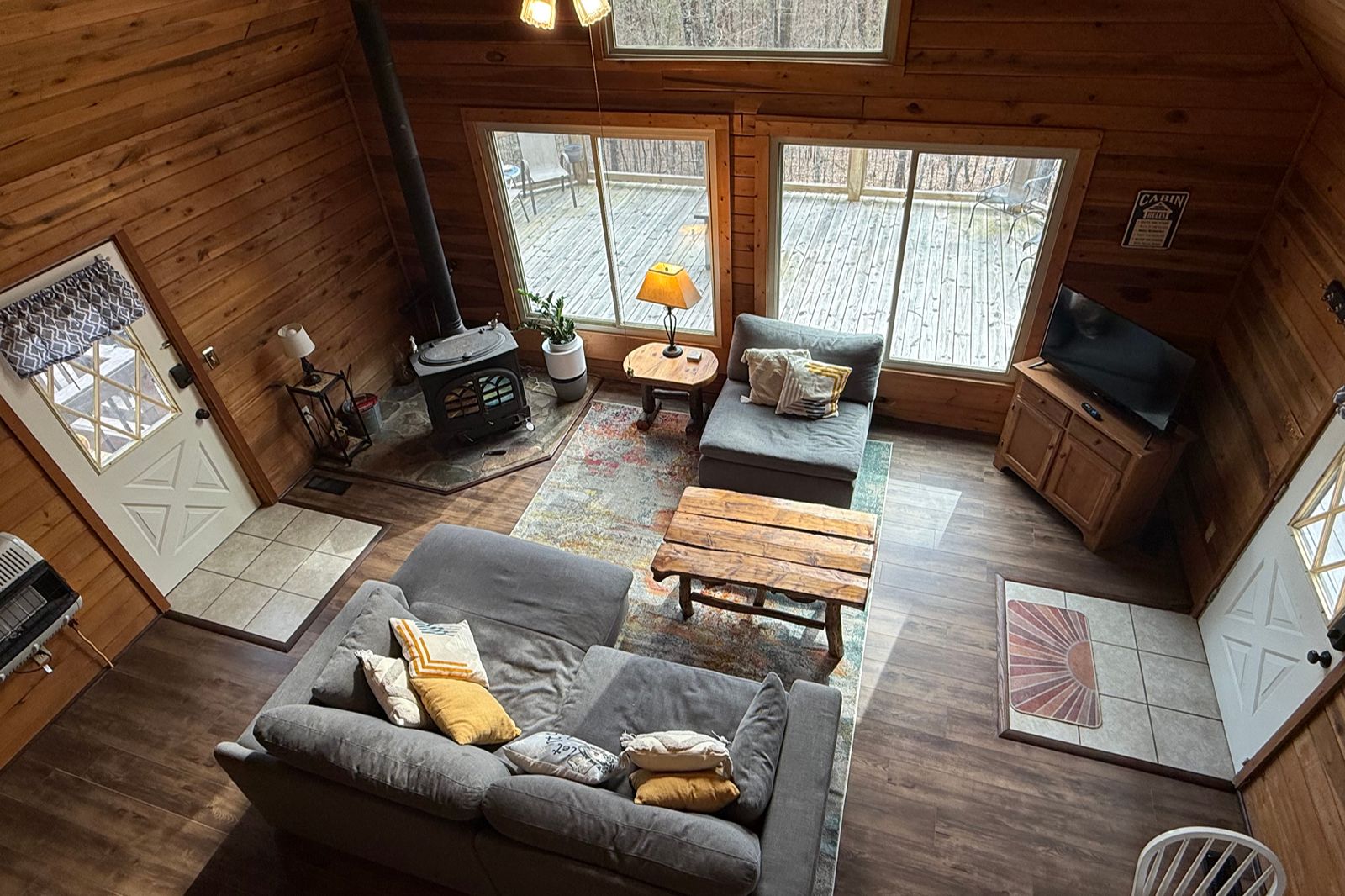 Inside, the cabin is designed for comfort and relaxation. Curl up by the fireplace, watch your favorite DVDs on the TV, or gather in the fully equipped kitchen to prepare delicious meals together. Whether you’re enjoying a board game, reading a favorite book, or sharing stories over a meal, Serenity Woods blends cozy comforts with memorable moments that make every stay special.