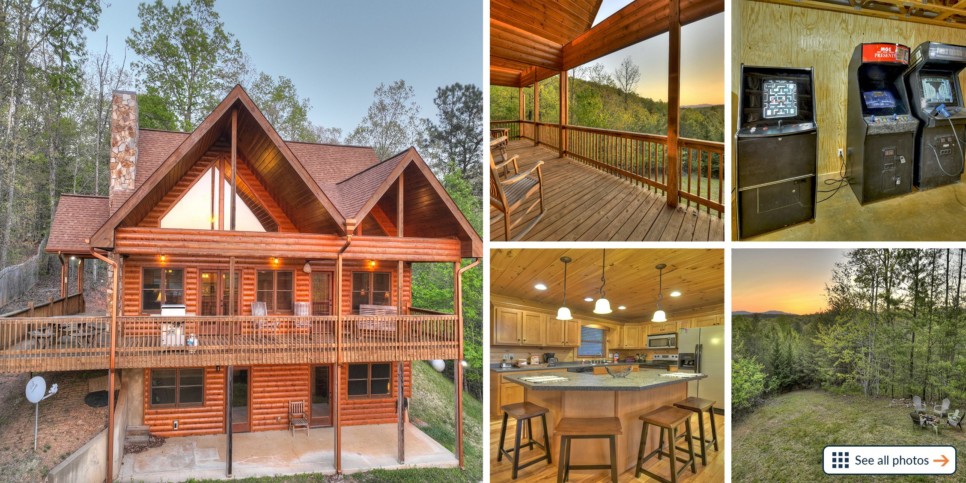 For entertainment, have fun in the unfinished game room that features arcade games and a media space! At night, retreat to the bedrooms that include a king master suite, an open loft bedroom with a queen bed and futon, and a bedroom in the partially finished (much cooler) basement/rec area. Inside and out, find space and amenities to make your North Georgia vacation one to remember!