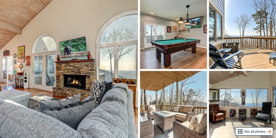 Start days at this Big Canoe rental with a cup of coffee and hearty breakfast made in the fully equipped kitchen, toss burgers on the grill for barbecues midday, and end evenings chatting with family and friends around the fire table. The game room boasts a wet bar and an 8-foot pool table for some fun. There’s a big screen TV and remote-activated gas fireplace in the bright and inviting living room. And you can unwind with a glass of wine and a good book while the sun sets or rises in the sunroom.